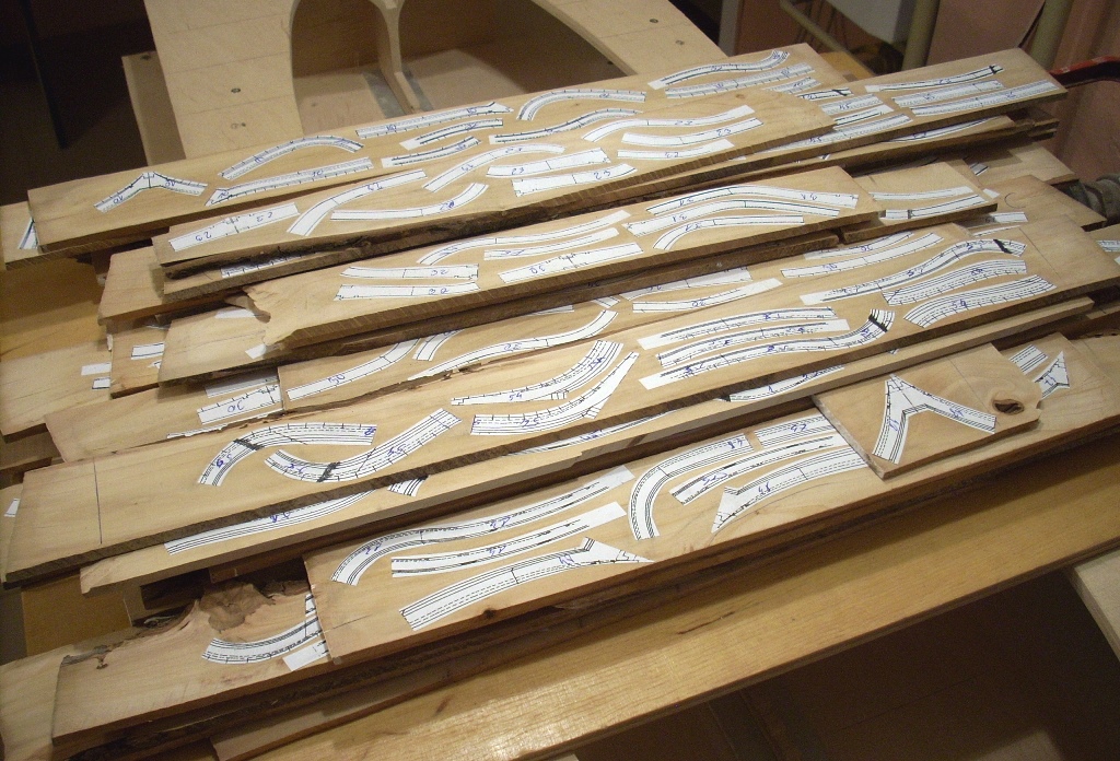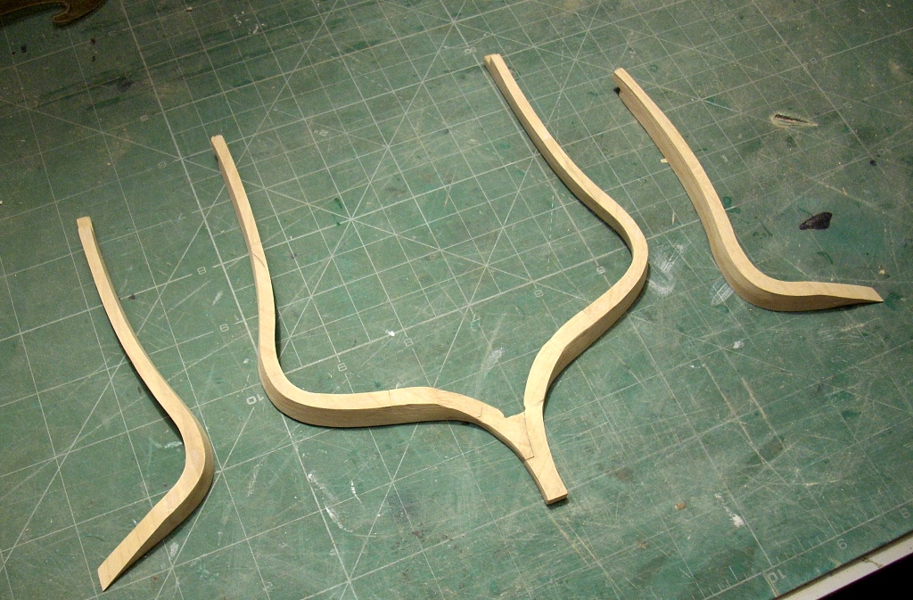 A nie wygodniej by było wyciąć dwie różne wręgi ( jak na rysunku przednia i tylnia ) i sklejać na planie i wtedy miejsca styku tych wręg pokazują Ci dokąd masz szlifować . Jest to wygodniejsze , moim zdaniem , i dokładniejsze . Nie trzeba tyle rezać tego drewna .