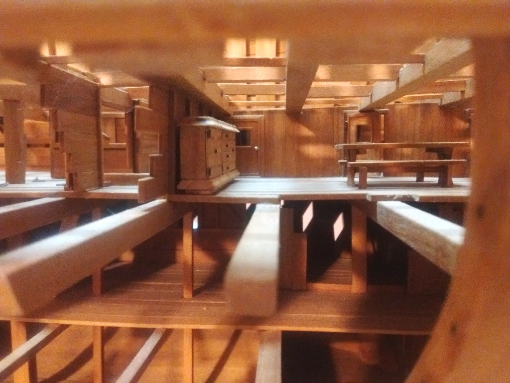 doszły kolejne belki wzmacniające na których będą ułożone deski wyrównujące poziom pokładników dla lepszego i stabilniejszego układania desek pokładowych oraz wstawiłem kilka mebelków