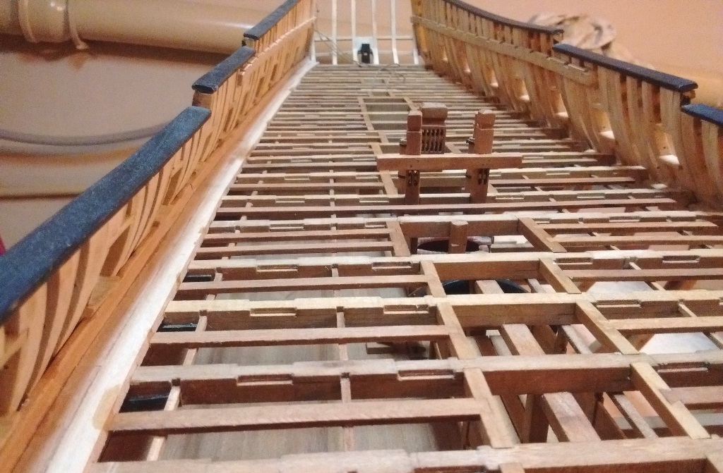 Uchylam też kapelusza dla Twych wysiłków pokazania tych nacięć na spodniej powierzchni owych belek wiązacych na pokladach Twego modelu i analogicznych w poprzecznych belkach pokładowych! Tu już wyższa szkoła jazdy i stolarka z wyższej pólki!!! Spasowanie wszystkich elementów jest jak w szwajcarskim zegarku!