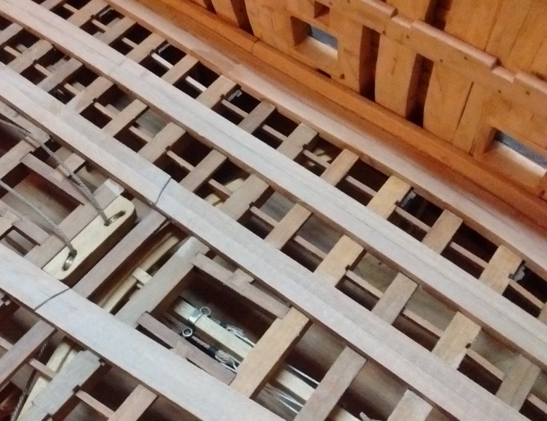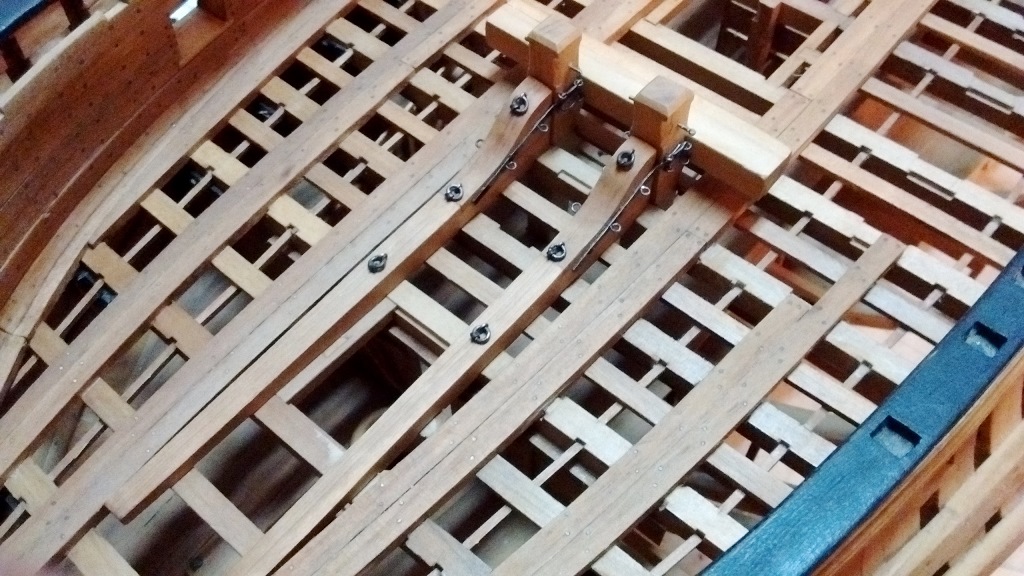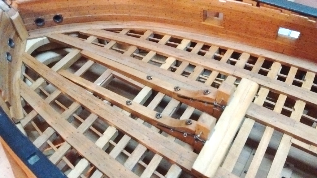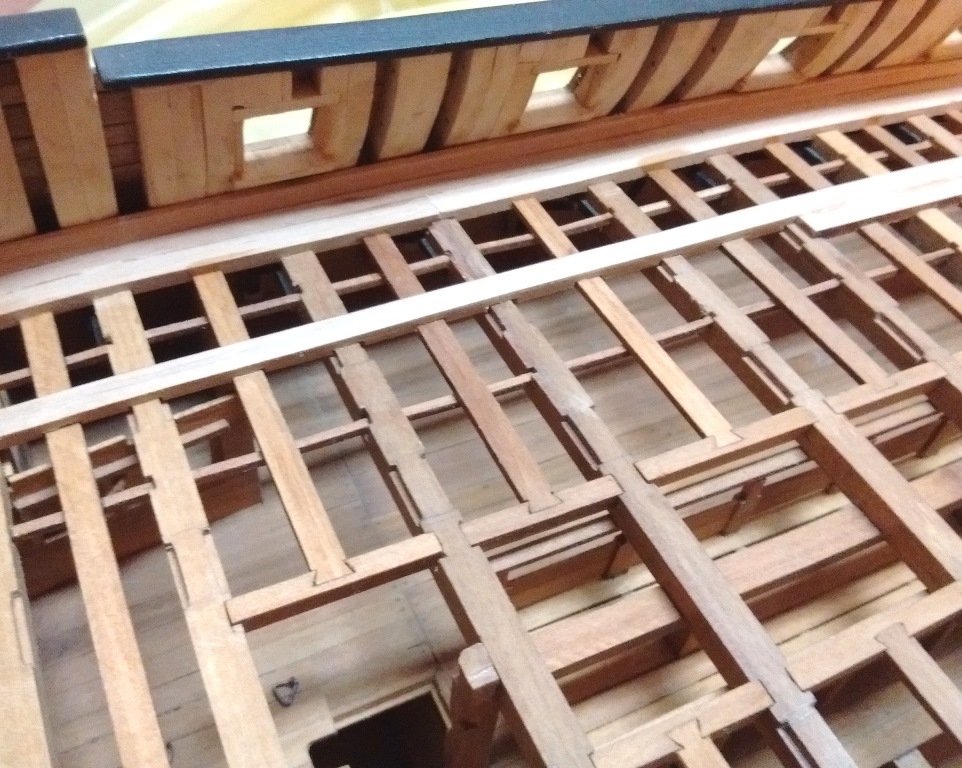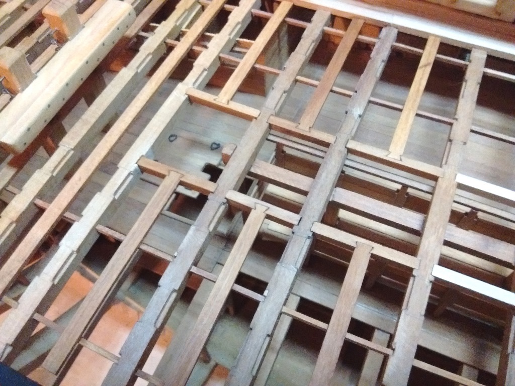 Uchylam też kapelusza dla Twych wysiłków pokazania tych nacięć na spodniej powierzchni owych belek wiązacych na pokladach Twego modelu i analogicznych w poprzecznych belkach pokładowych! Tu już wyższa szkoła jazdy i stolarka z wyższej pólki!!! Spasowanie wszystkich elementów jest jak w szwajcarskim zegarku!