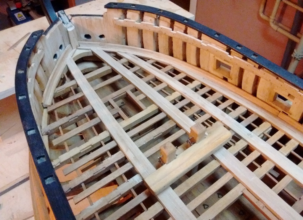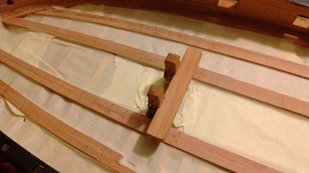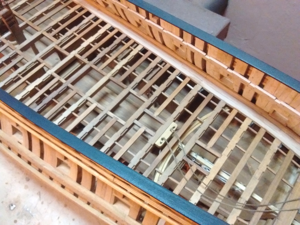 Pomału dochodzi trochę desek pokładowych i zaczynam układanie poszycia wewnętrznego