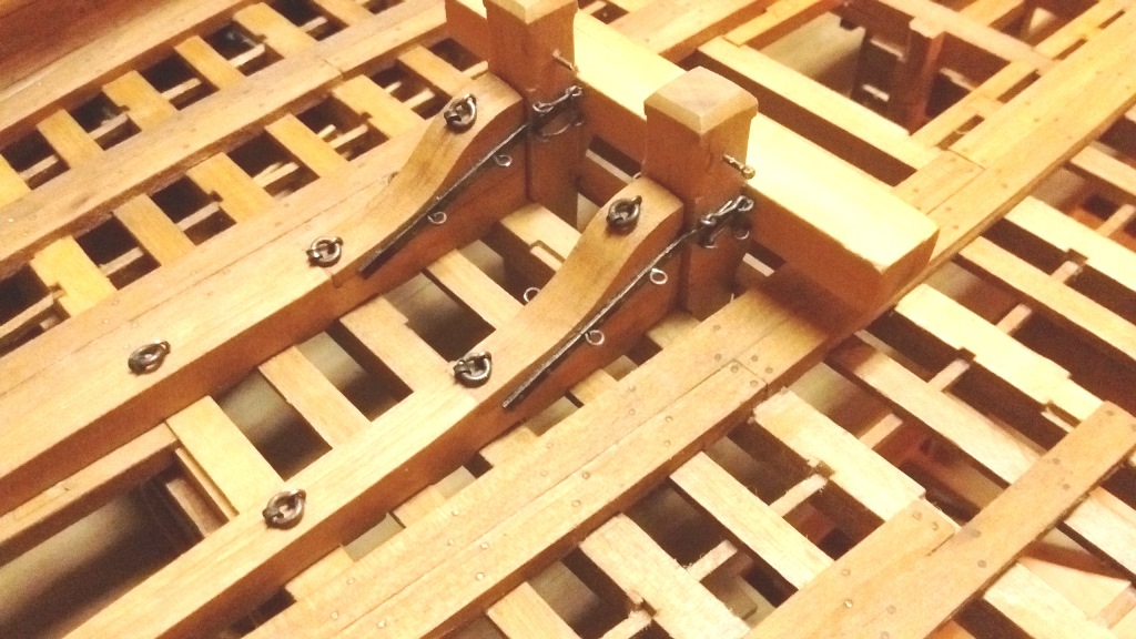 prace nad belkami montowanymi do pokładników i podwójnego pachoła kotwicznego