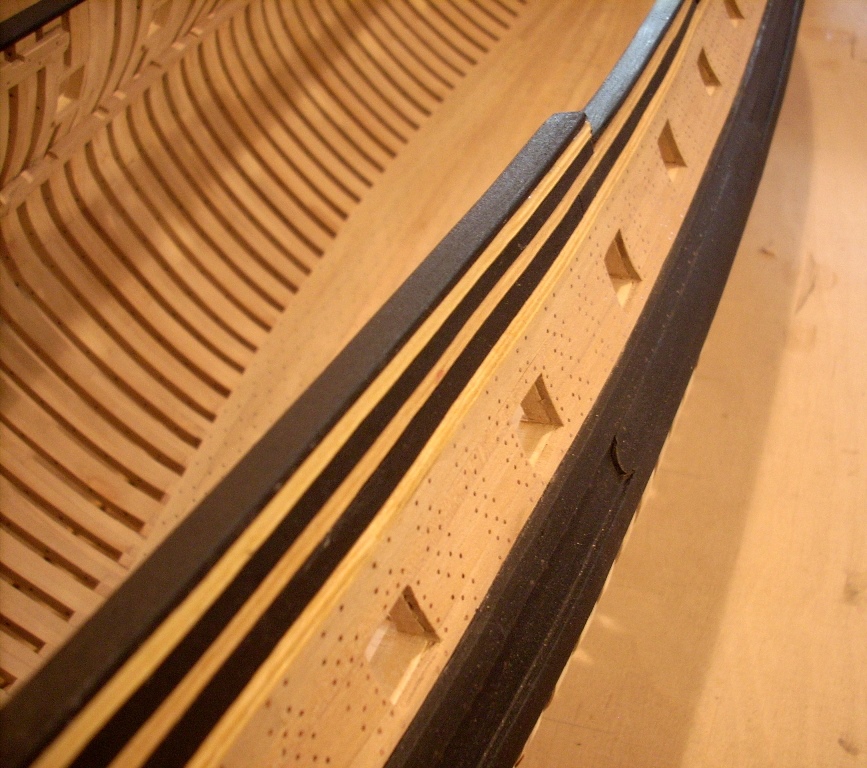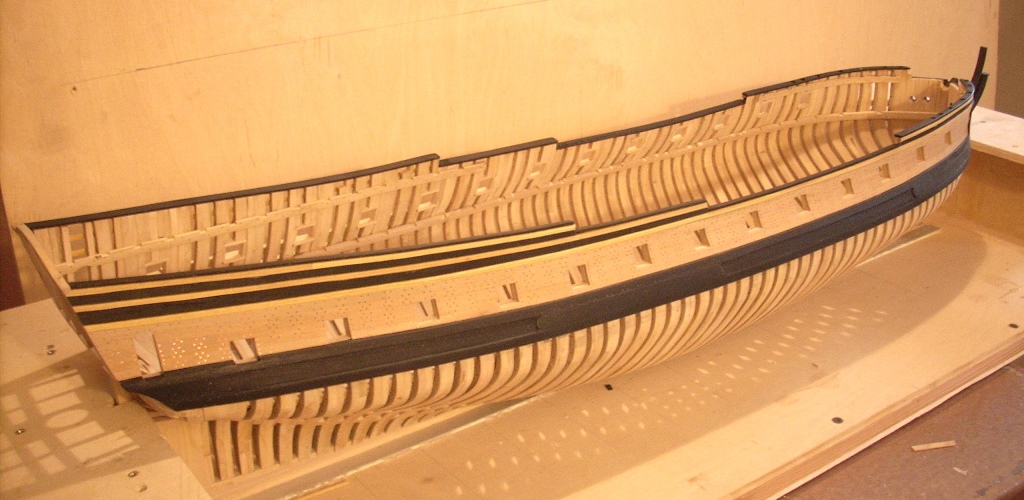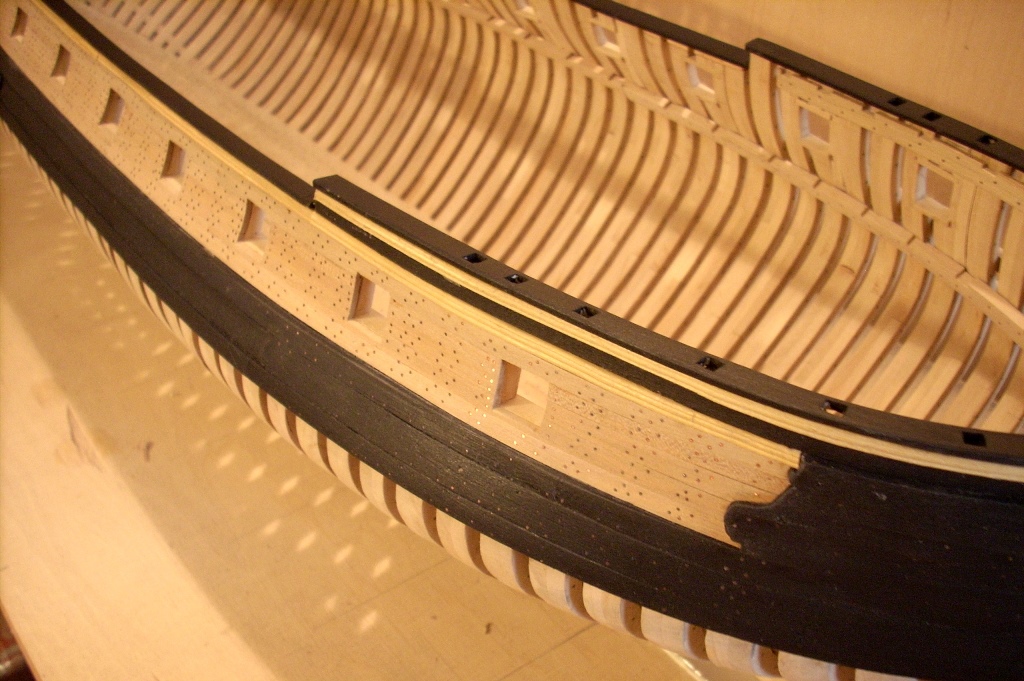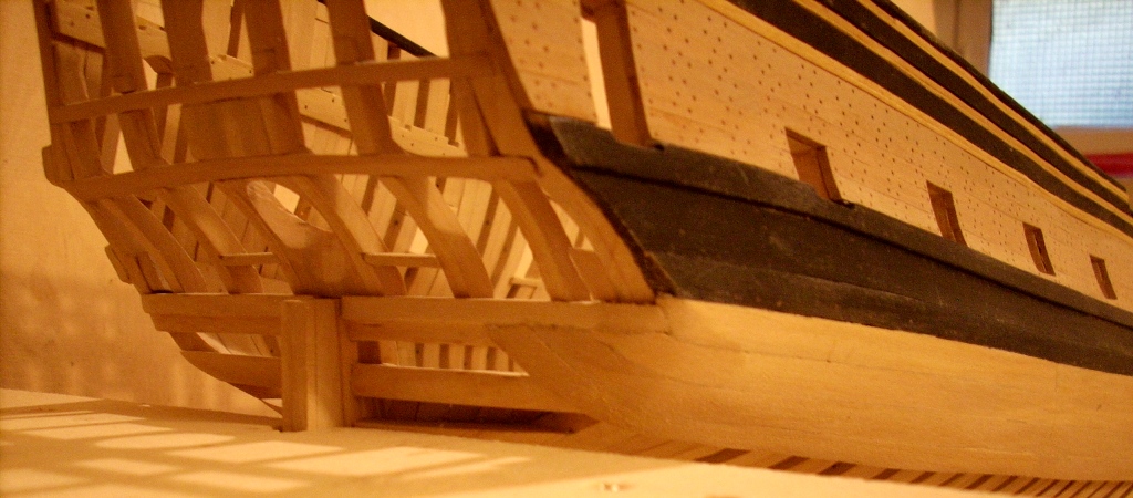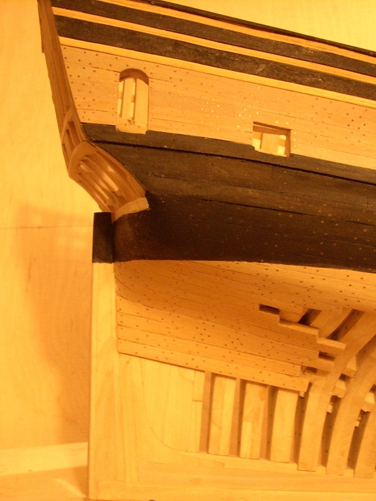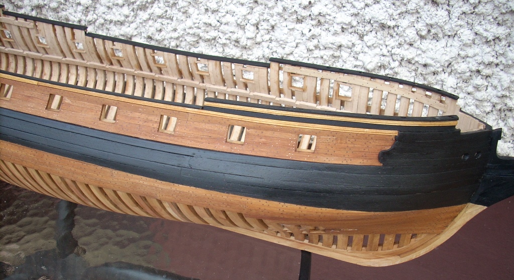 doszło trochę poszycia nie będzie na całości chciałem tylko pokazać jak to wygląda dołożę jeszcze po kilka listewek na dziobie i rufie by było widać stalersy , jeden już jest na dziobie :D