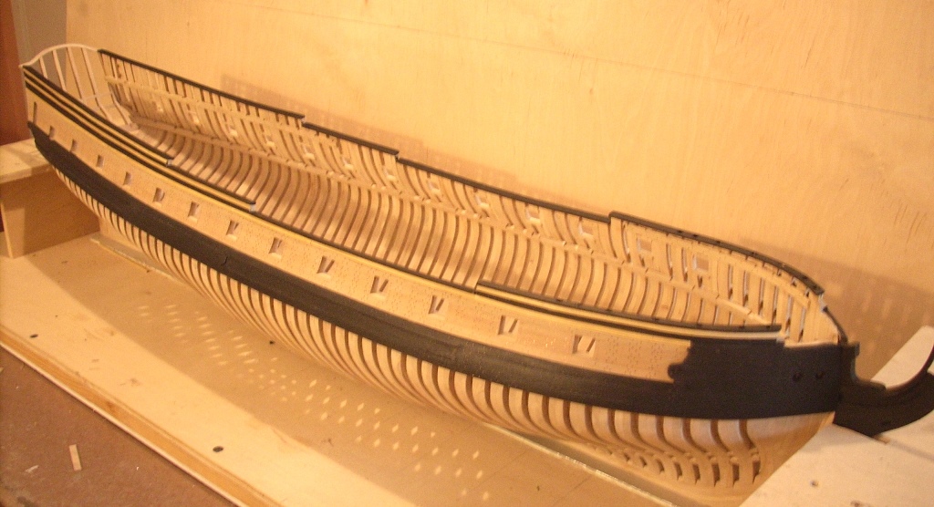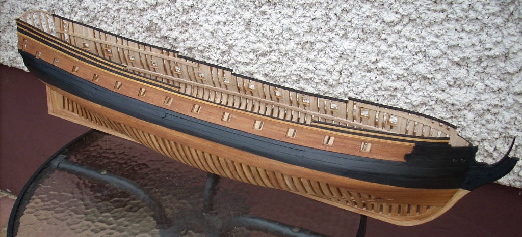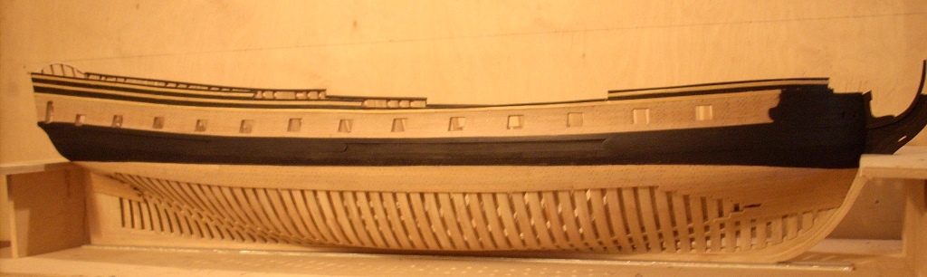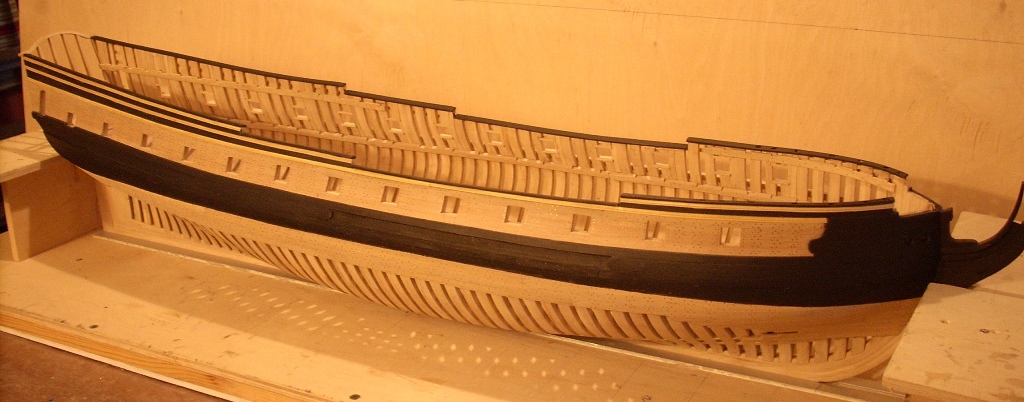poszycie zostanie na takim etapie, pomalowałem je na wysokość linii wodnej teraz czas na prace związane z wyposażeniem wnętrza skorupki :D