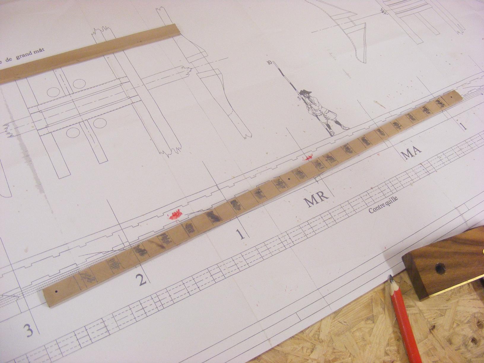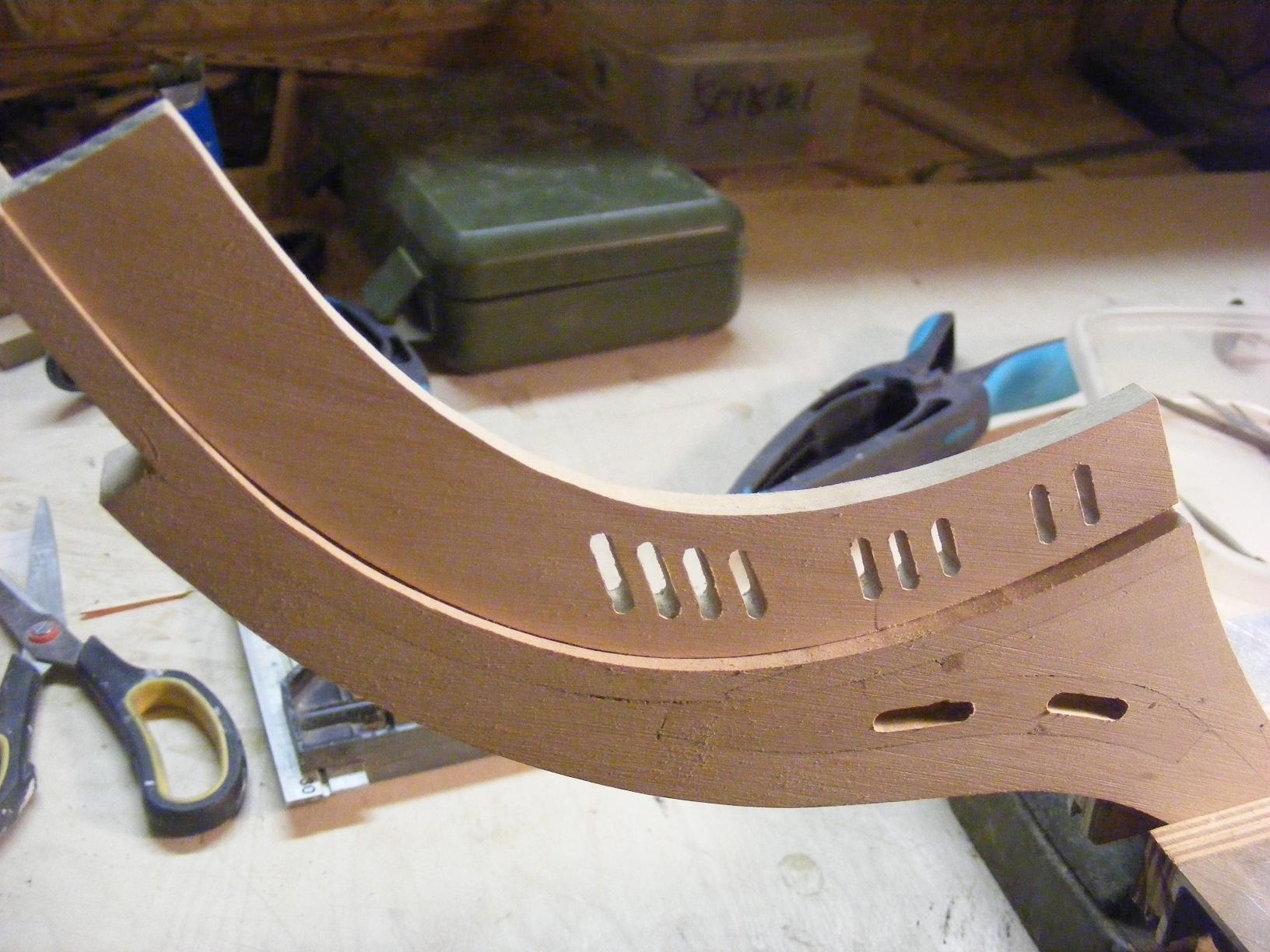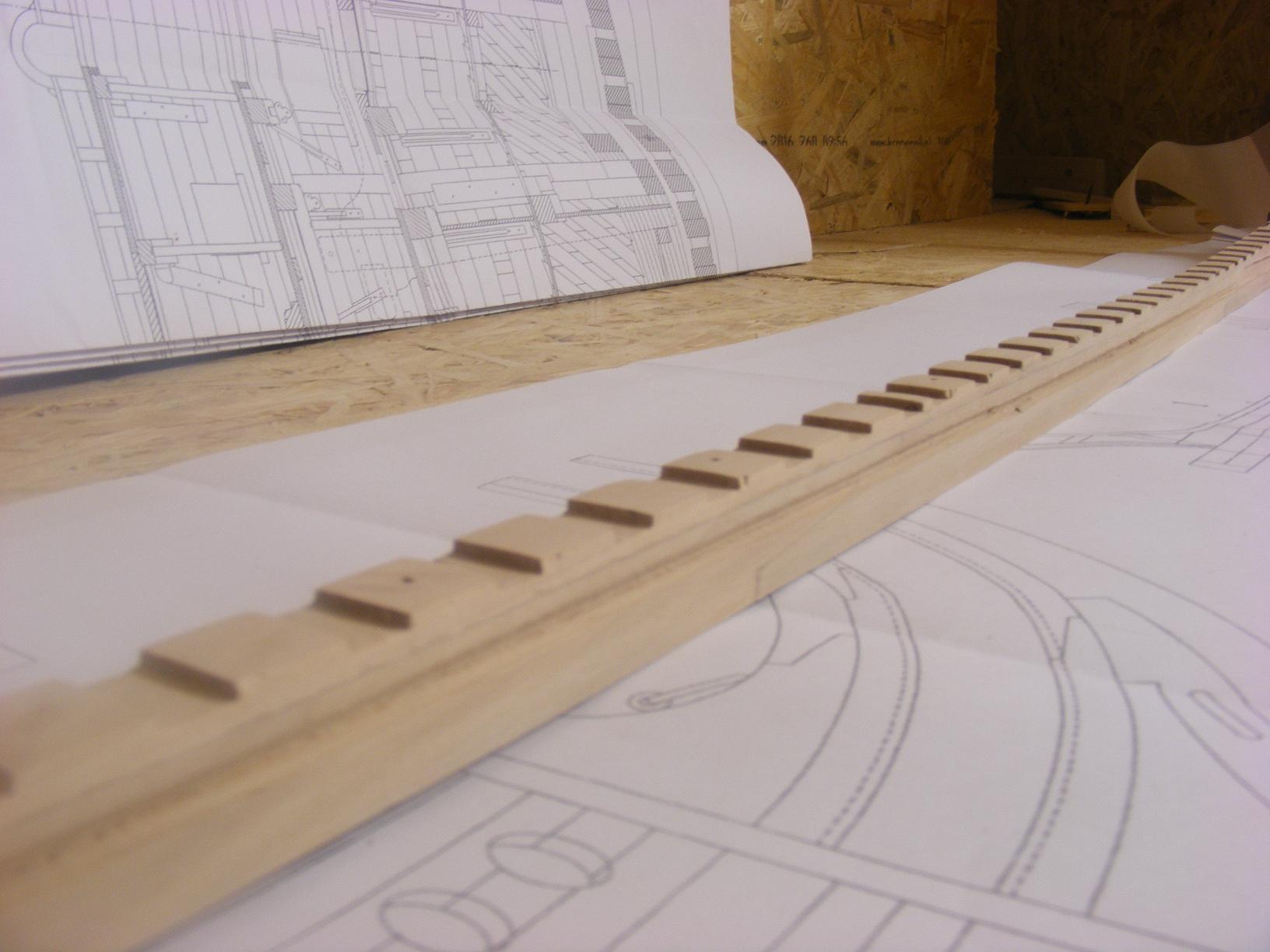 Zrobiłem też listwę z wycięciami na kil gdzie wchodzą wręgi .