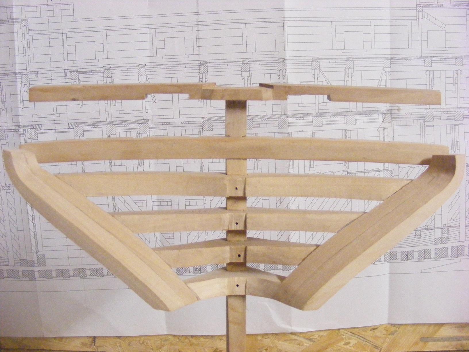 Skleiłem te części rufowe w całość . Jest to dopiero początek rufy , jeszcze będzie tu trochę patyków .