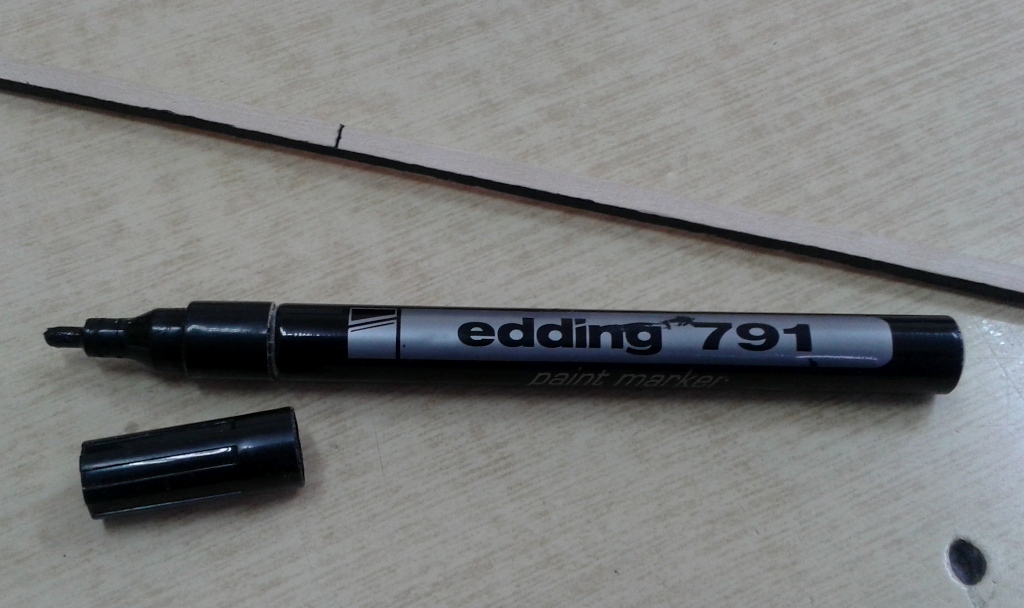 dichtung robię takim pisakiem olejowym, zostawia cienką powłokę nie wsiąka w drewno i nie rozmazuje się pod wpływem kleju.