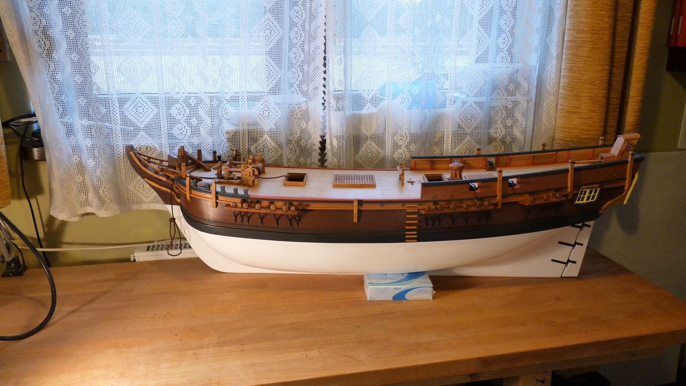 Zaczynam relację HMS Bounty, skala 1: 26, kadłub wykonany z sosny, pokład z olchy, elementy na pokładzie: grusza, buk, lipa. Nie mam zdjęć z wcześniejszych etapów budowy, ale postaram się pokazać jak najwięcej z obecnego stanu budowy. Ponieważ kończy się sezon modelarski (przynajmniej dla mnie) prace będą postępowały wolno, ale z pewnością Bounty zostanie ukończony.