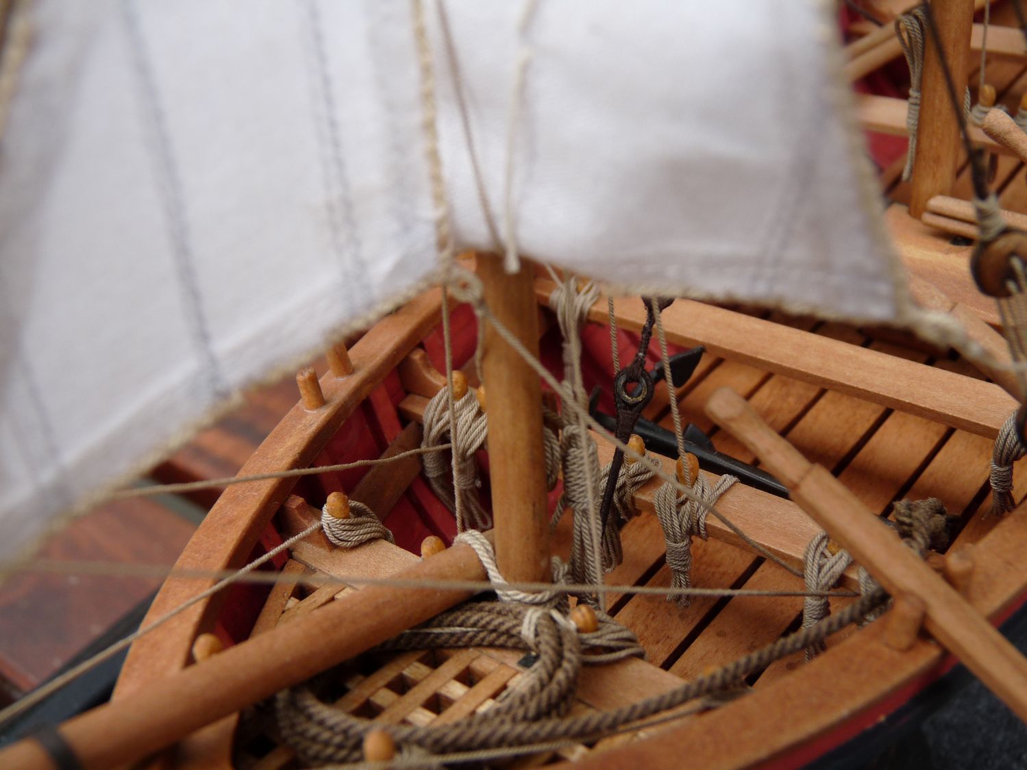 Zmieniłem cały takielunek i uszyłem nowe żagle aczkolwiek stare podobały mi się, ale je zmieniłem, nowe wydają się być lżejsze .