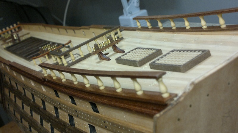 Balustrady są lekko wygięte z racji obłości kadłuba.