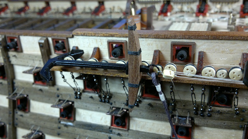 I czas na kotwicę Fajnie to tam na forach zrobiliście wzorowałem się nie raz na relacjach. Kotwica sama w sobie w miarę ok ta z zestawu ale poprzeczka do kosza. Poprzeczkę postanowiłem wykonać od nowa. Troszkę obróbki docinki i jest. Na koniec jakieś owijki dla oka:) z dołączonymi bloczkami.