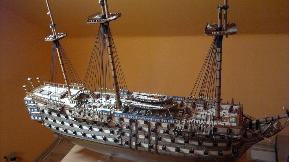 Zaprezentuję teraz wanty i wiązania jufersów. Wanty wykonałem z linek 1.0mm z firmy Amati a wiązanie jufesów 0.25mm. Sporo roboty naciągania też i nieudanych prób ale jak dla mnie wyszło super. Takielunek olinowanie dodaje uroku żaglowcom a to dopiero początek Pozdrawiam ps. z wyblinkami to będzie jazda