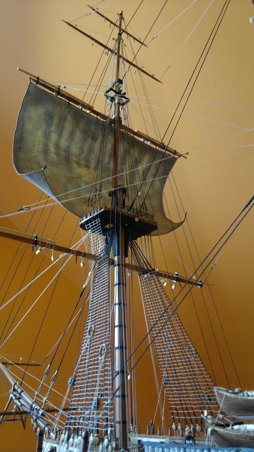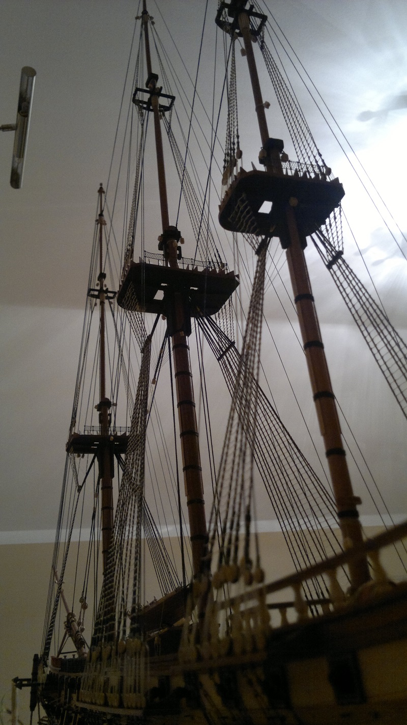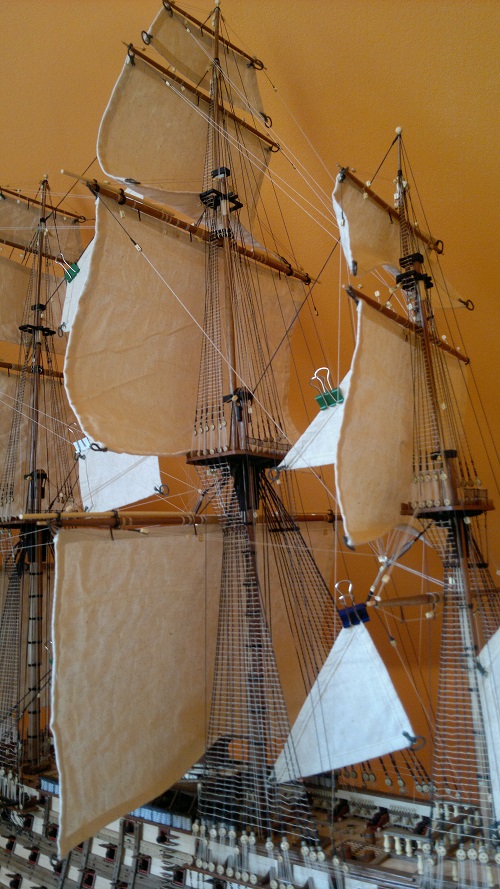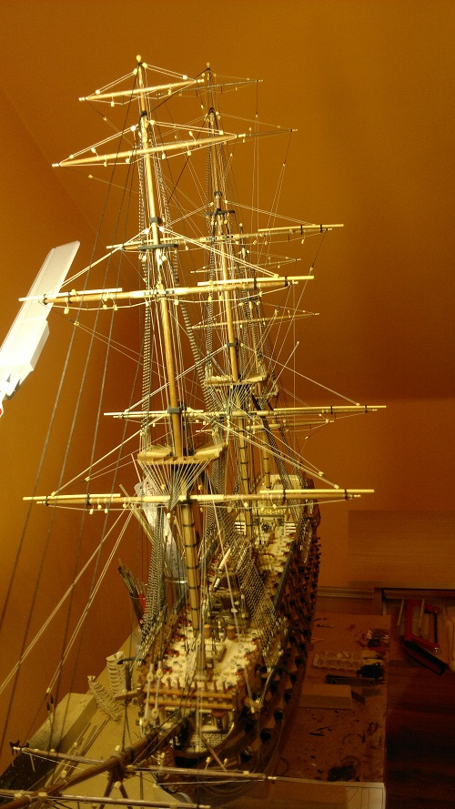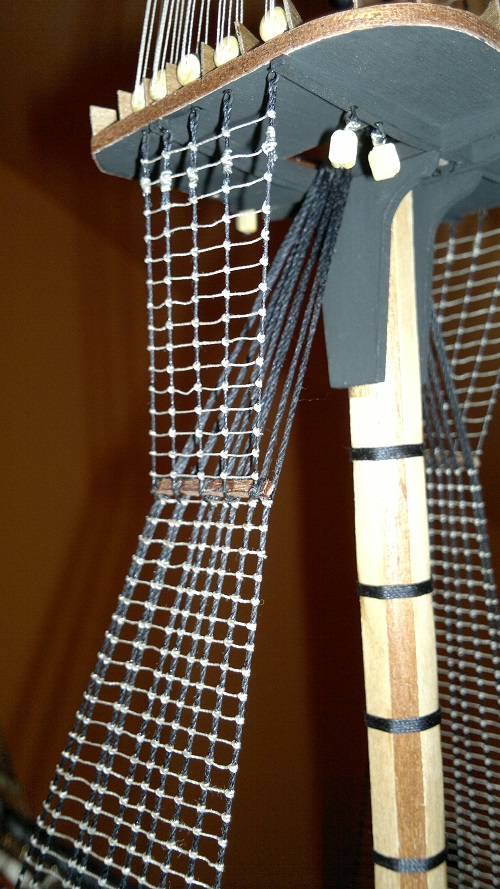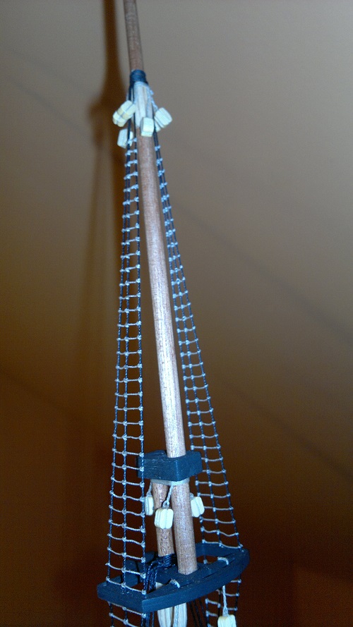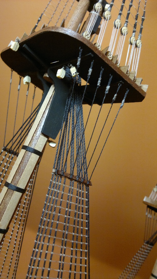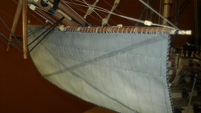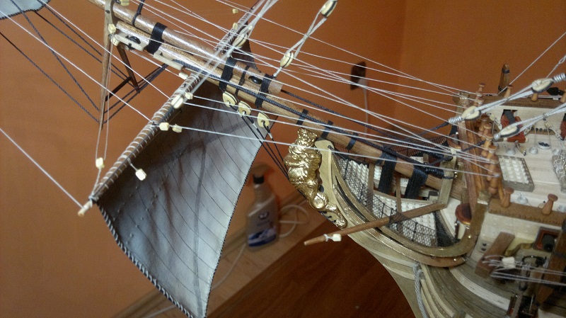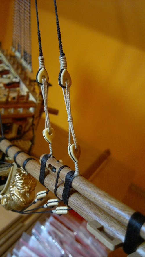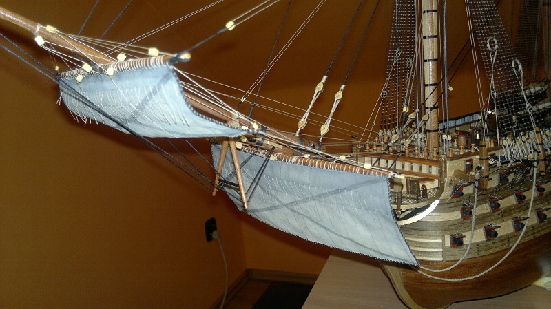Jak w przyszłości będziesz robił przewiąz bukszprytu (gammoning), to polecam wątek Jarka (jarcio), który świetnie to opisał i zilustrował w cyklu o olinowaniu na HMS Victory: