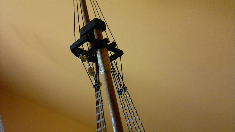 Próbny etap wylądował w koszu i na nowo wiązałem wanty jufersy w części rufowej. By się czegoś nauczyć trzeba czasami spaprać ;)