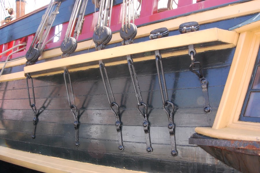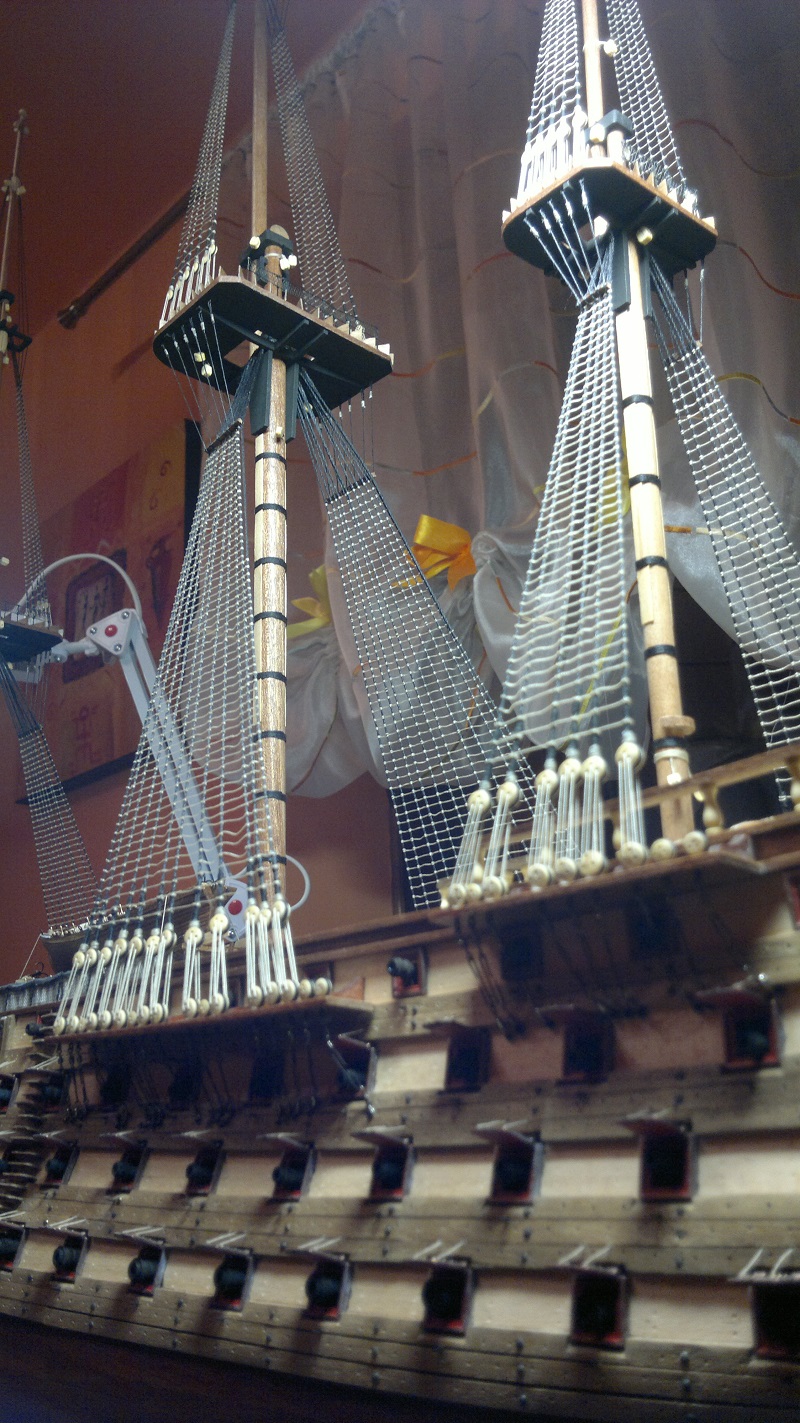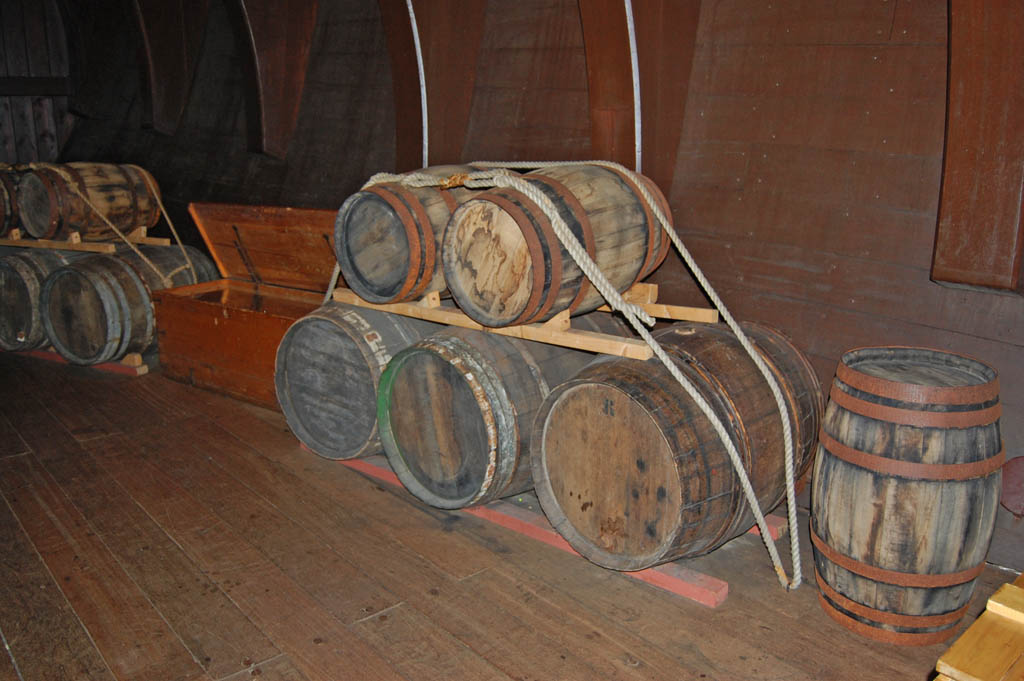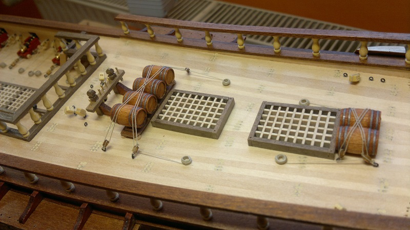 Beczki na rufówce też mi się podobają, ale z wiązaniem to przesadziłeś (bloczki – nie mają logicznego uzasadnienia, ponadto liny nie są nigdzie knagowane).