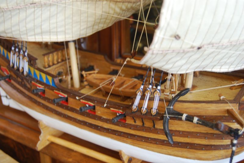 Jak ładowali działo za grotem jak patrzy centralnie w maszt i dodatkowo kołkownica tam stoi ? Jak ładowali resztę dział z szalupą na środku skoro nie chowały się działa za krawędź otworu działowego ? Ktoś się wychylał za burtę z kulą ? A jak przybijali ? Z tali podciągających dział zrezygnowałem bo i tak już się zrobiło tłoczno.
