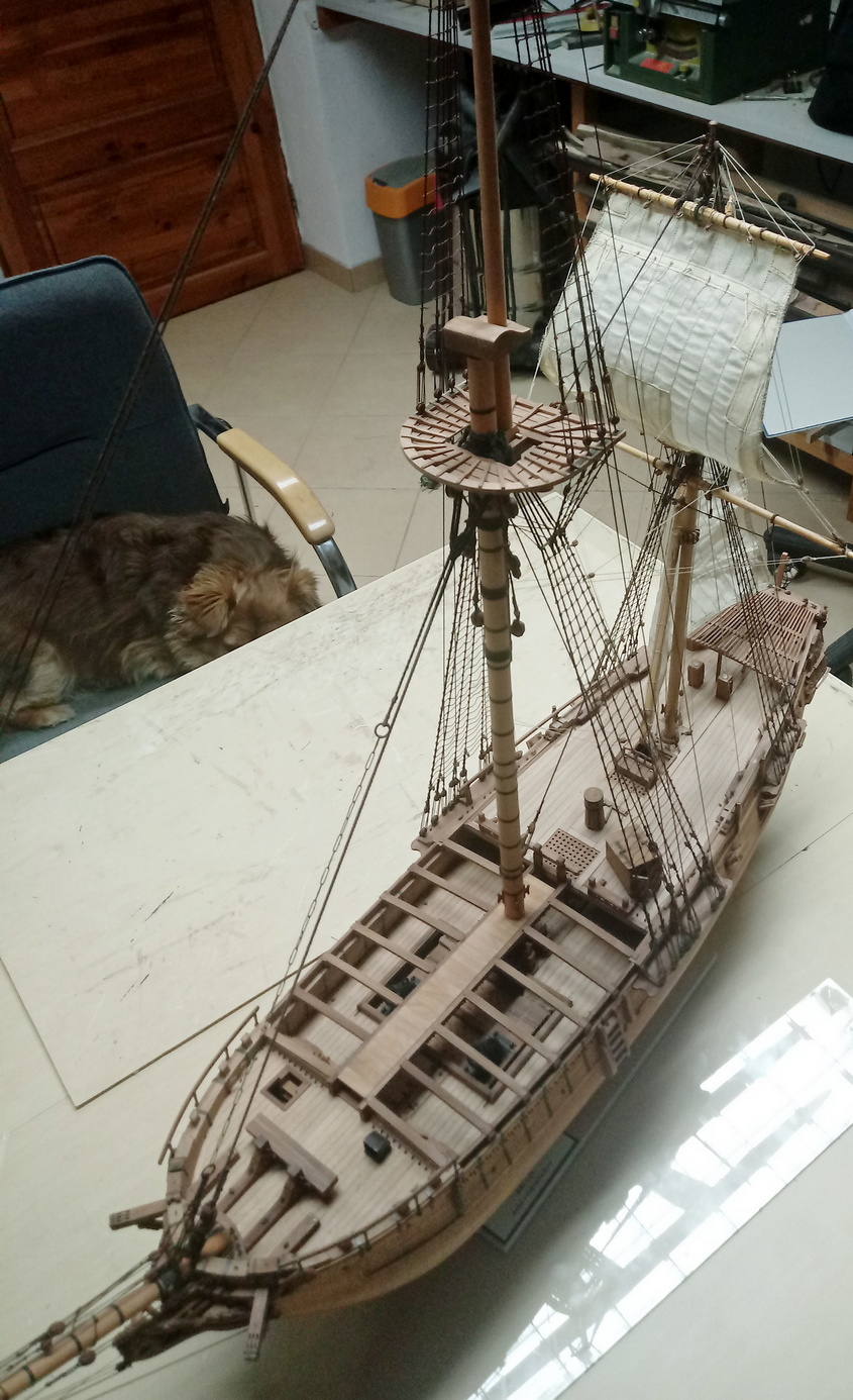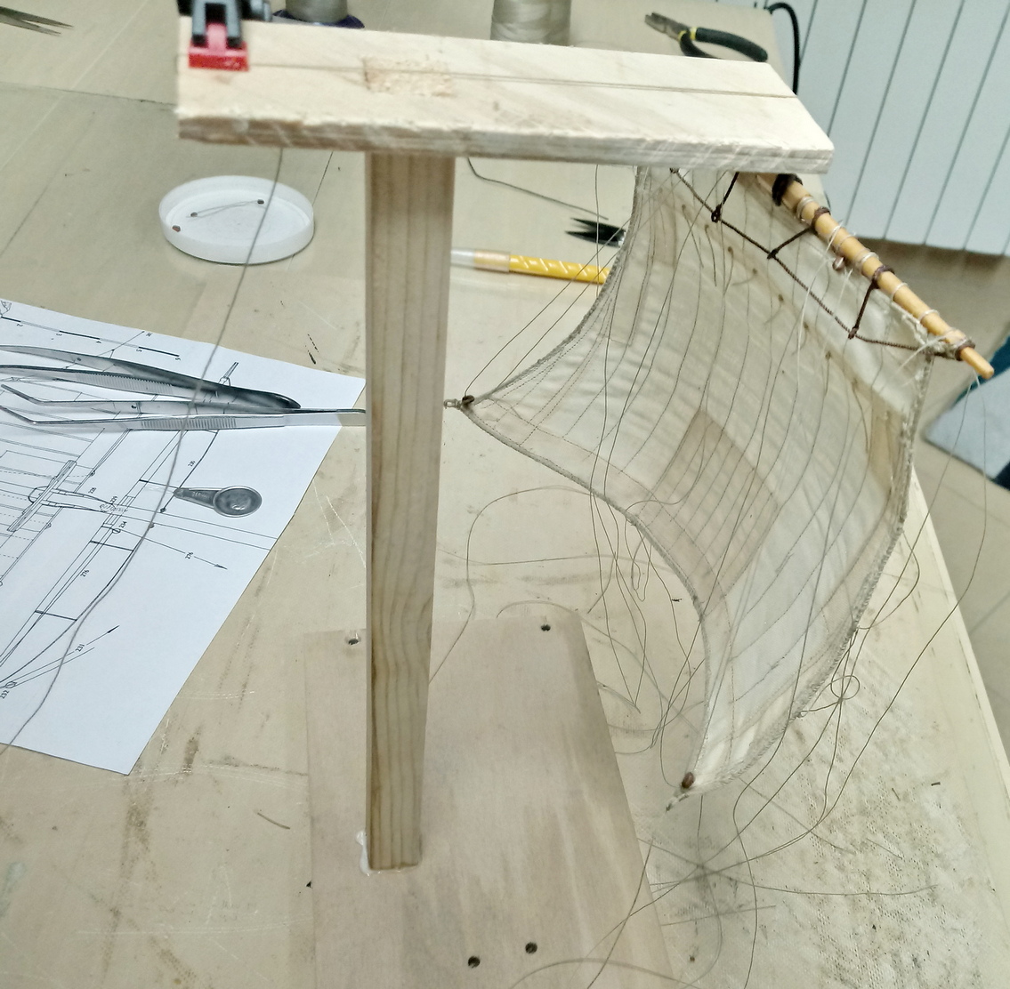 Przede mną jeszcze dwa żagielki; topżagiel grota i najbardziej chyba skomplikowany, żagiel podbukszprytowy