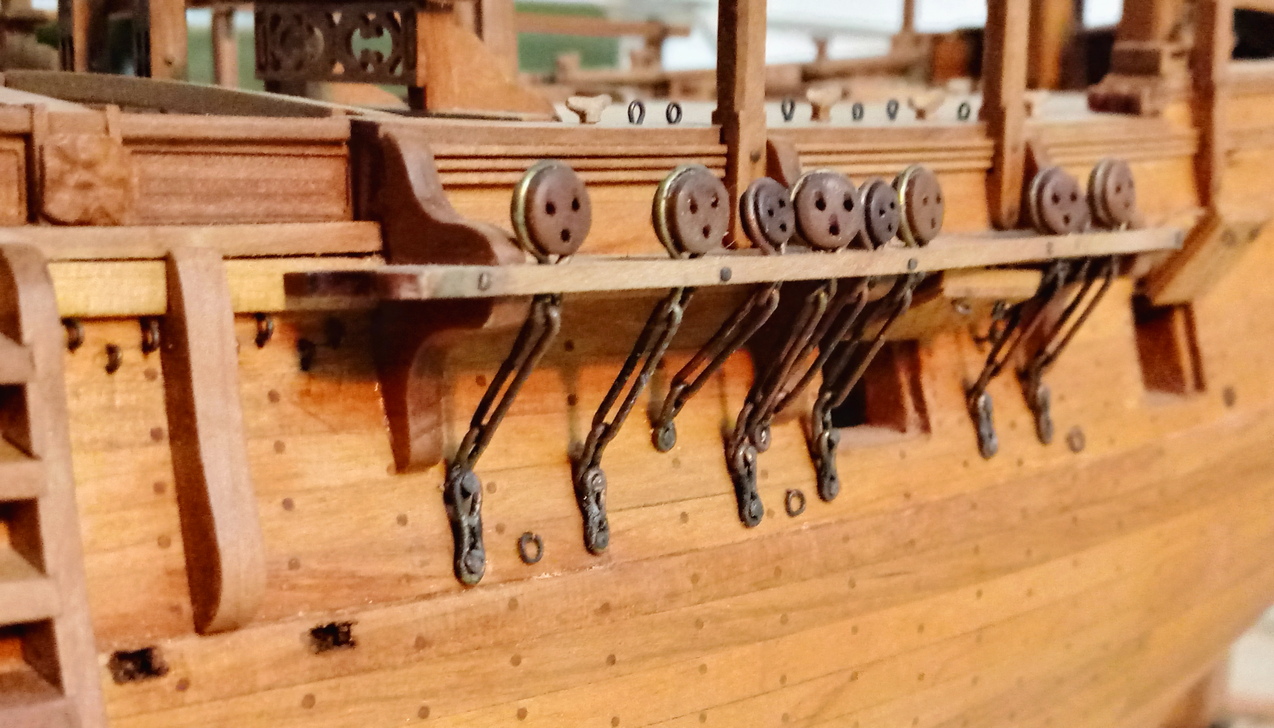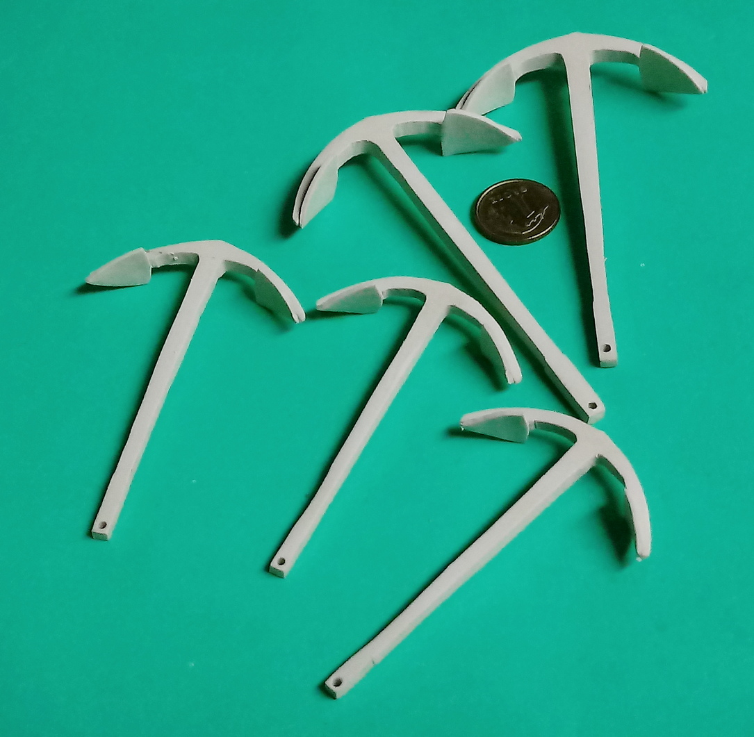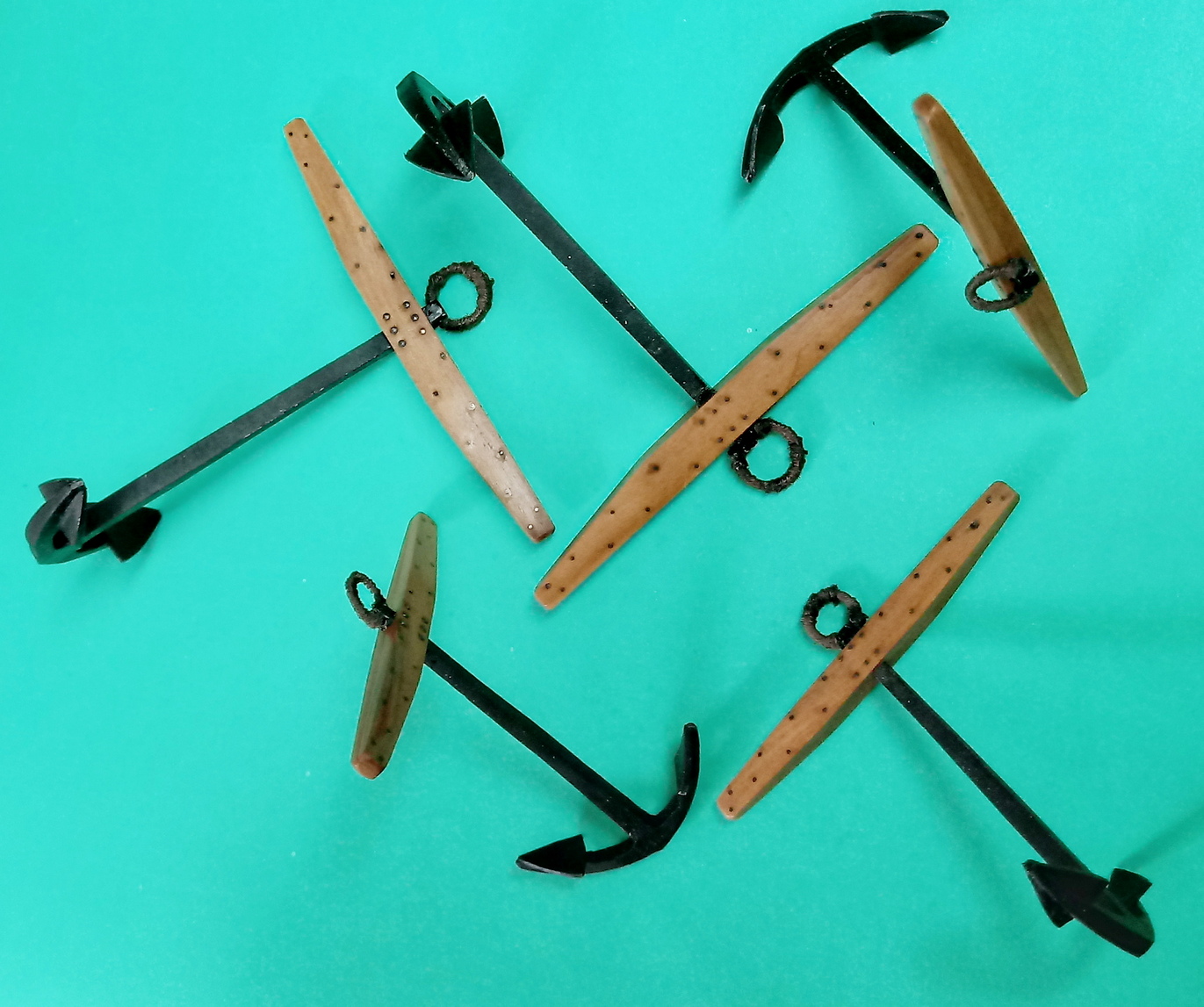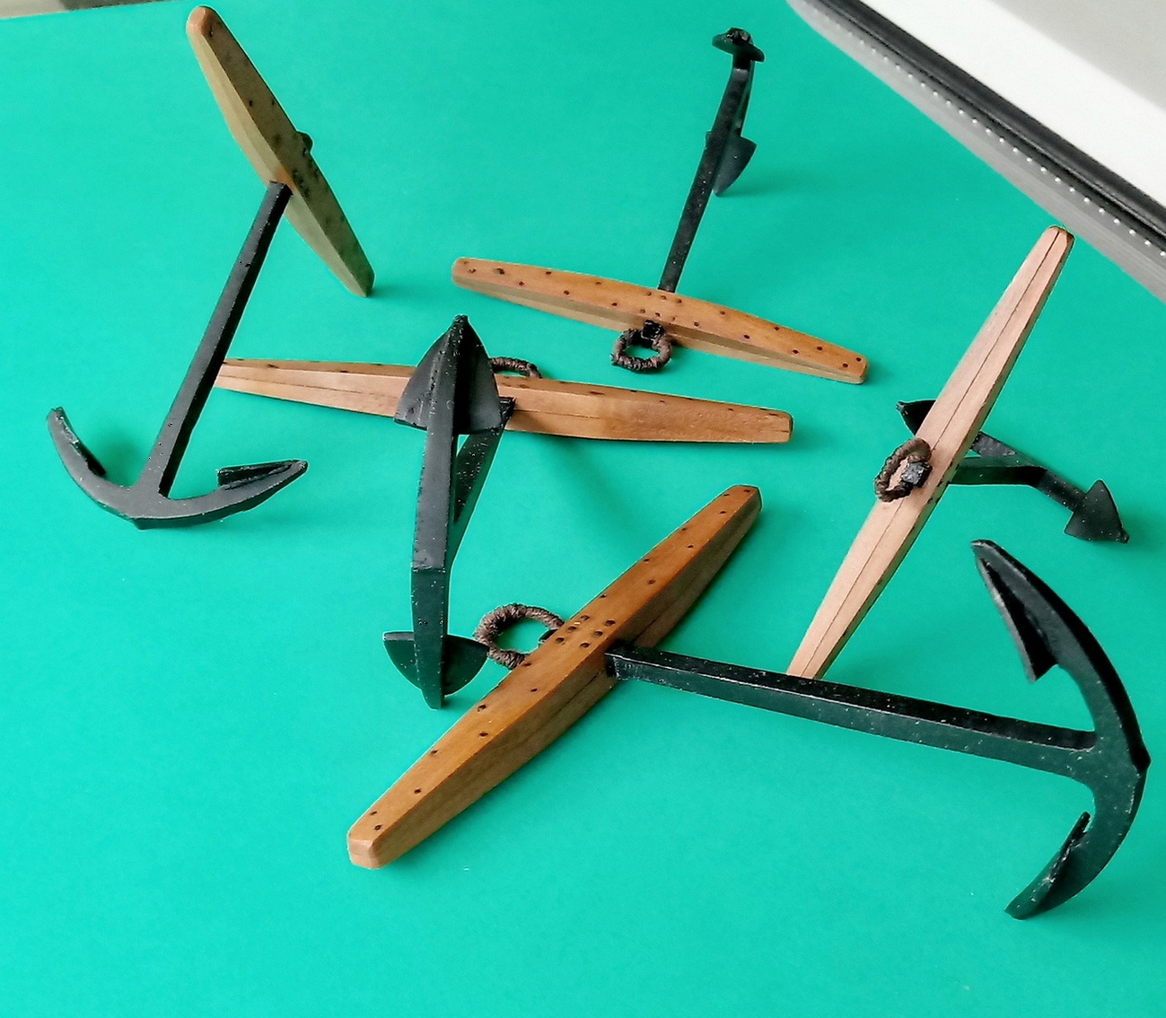 Na planie ogólnym okrętu, naliczyłem pięć kotwic w dwóch wielkościach.