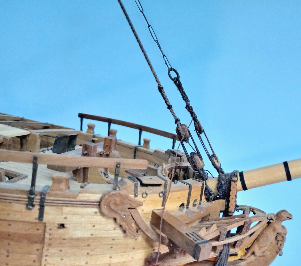 Bukszpryt też gotowy i zamontowany w kadłubie: