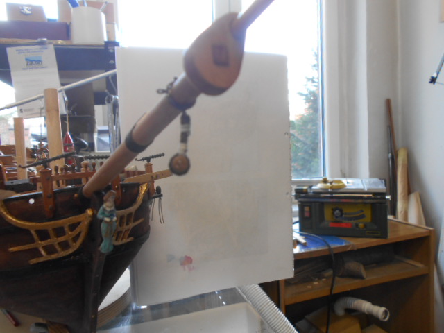 Prace postępują powoli ale postęp jest. Tym razem wziąłem sie za bukszpryt i stengę bukszprytu ( bomstenga) specjalnym hebelkiem od Mariana ostrugałem patyczek na okrągło
