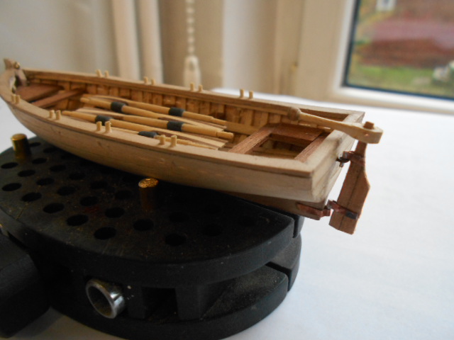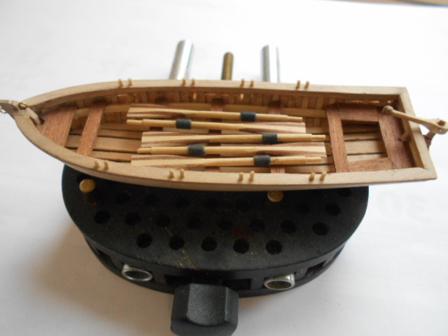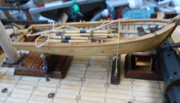 jest lekki postęp. Zrobiłem podstawki pod szalupę i zamocowałem ją na pokładzie.