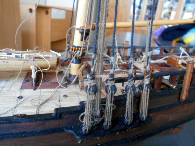 Teraz kolej wyblinki want w dalszej kolejności żagielki i olinowanie ruchome. Liny stałe konserwuję mazidłem czarnym , a ruchome mazidełkiem jasnym brązowym , nabyte kiedyś od Mirka.