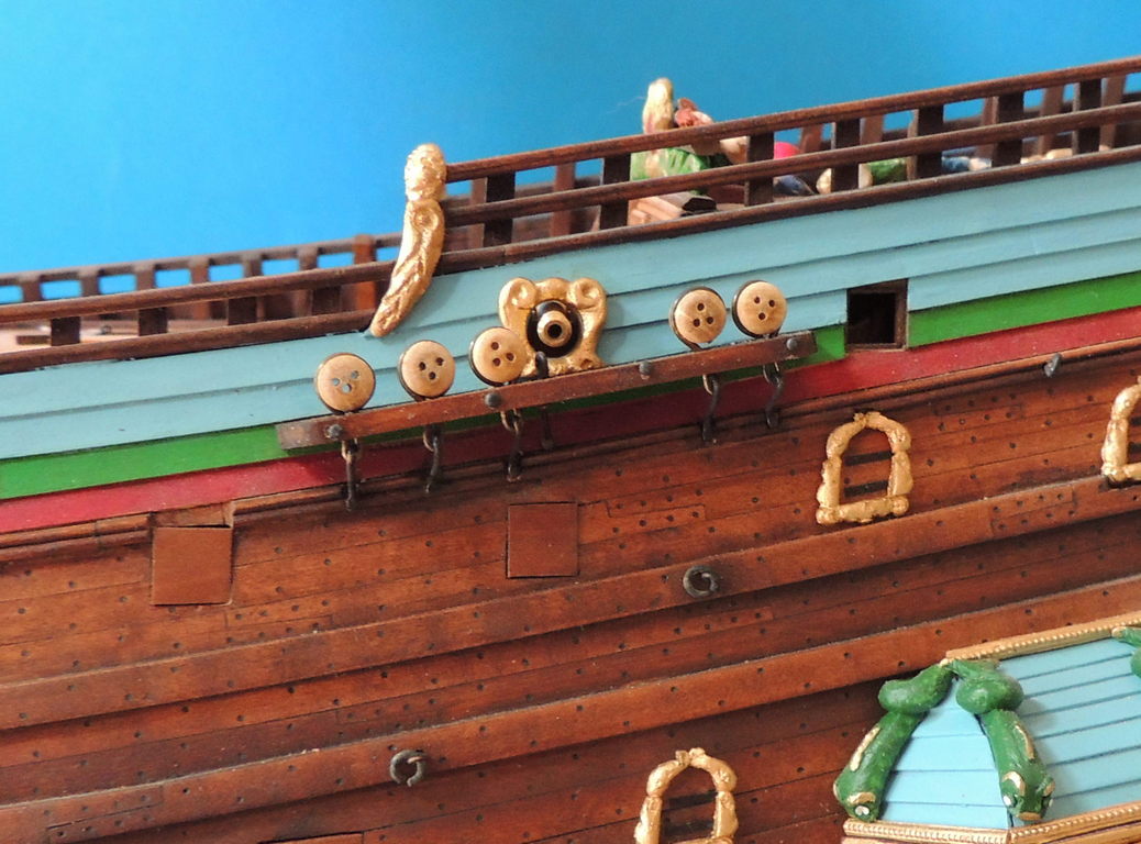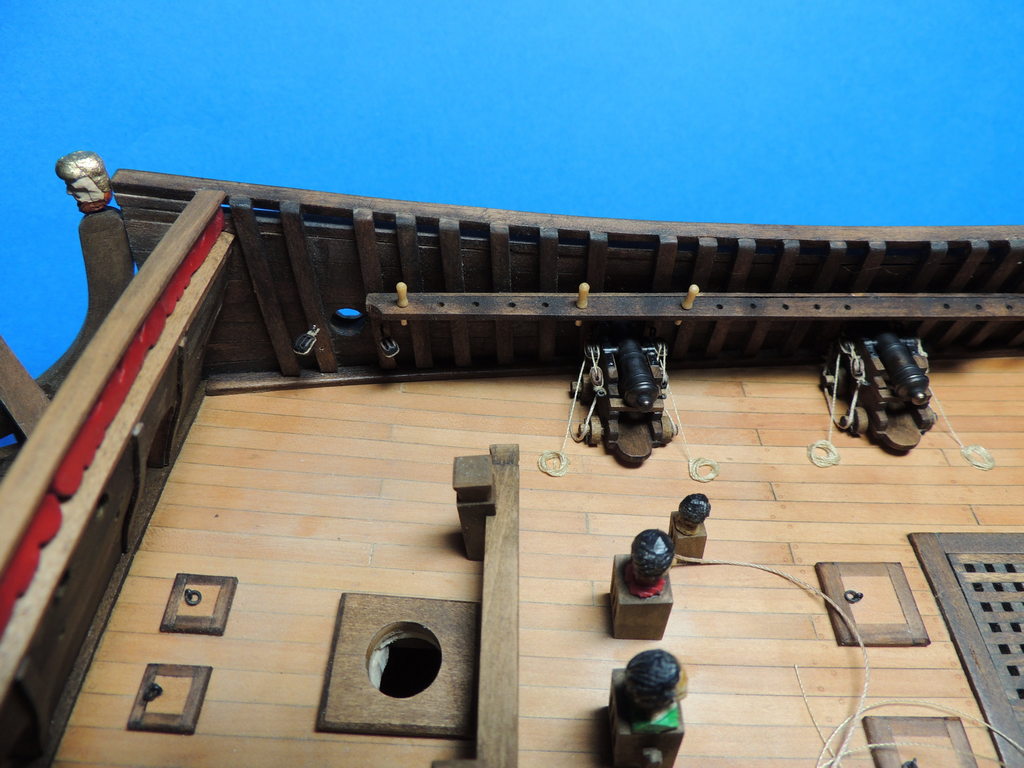 Działa uwiązane na swoich miejscach. Jakoś to poszło. Dwa małe działka na pokładzie rufowym mają tylko linę główną.
