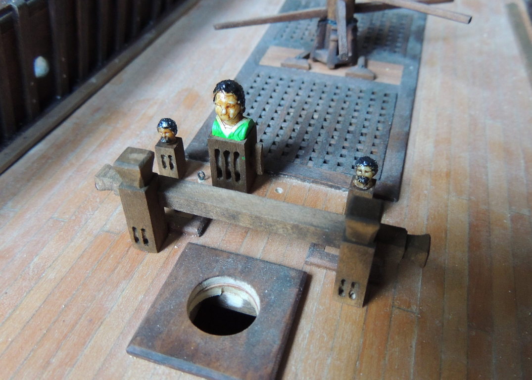 Kołkownice na razie bez nagli. Pachoły przy grotmaszcie- na ten potrójny muszę jeszcze odlać ozdobną głowę.