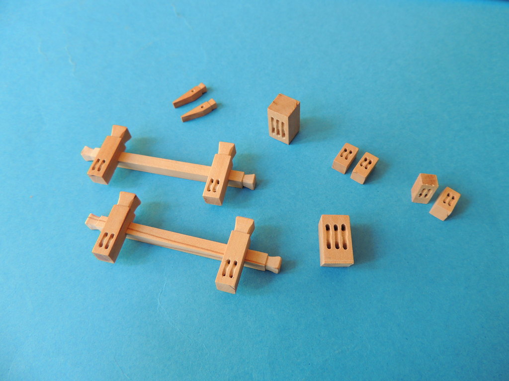 Pachołki gotowe. W większości, nie wiem co było do nich mocowane. Będę miał z tym spory problem. Teraz zabieram się za nagle i knagi.
