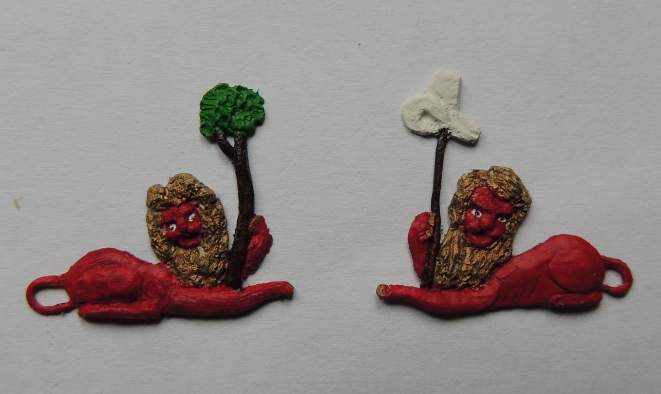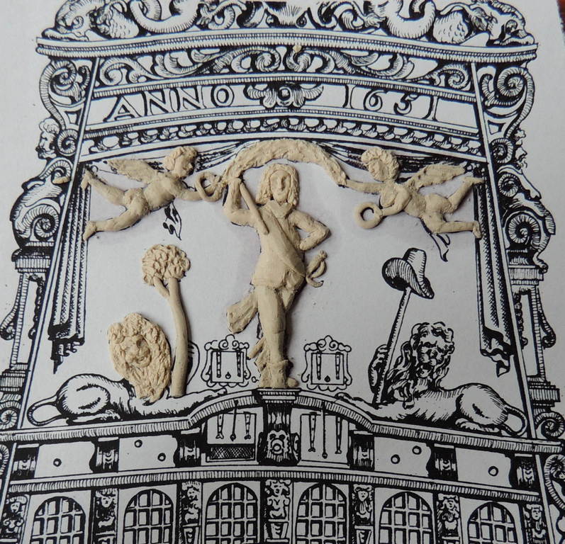 Przyszedł moment, którego obawiałem się najbardziej w budowie modelu, czyli rzeźby. Postanowiłem je wykonać z modeliny, metodą widoczną na zdjęciach.Na końcu pomalowane lewki.