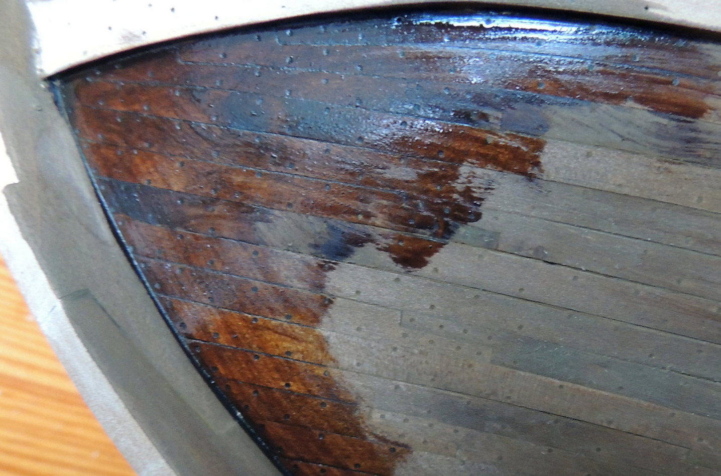 Ps. Tak myślę, ze też zauważyłeś, ze szkutnicy z dawnych trzymali linię ugięcia dech poszycia jako jedną płynną krzywiznę. Chylę czoła za wykonanie.