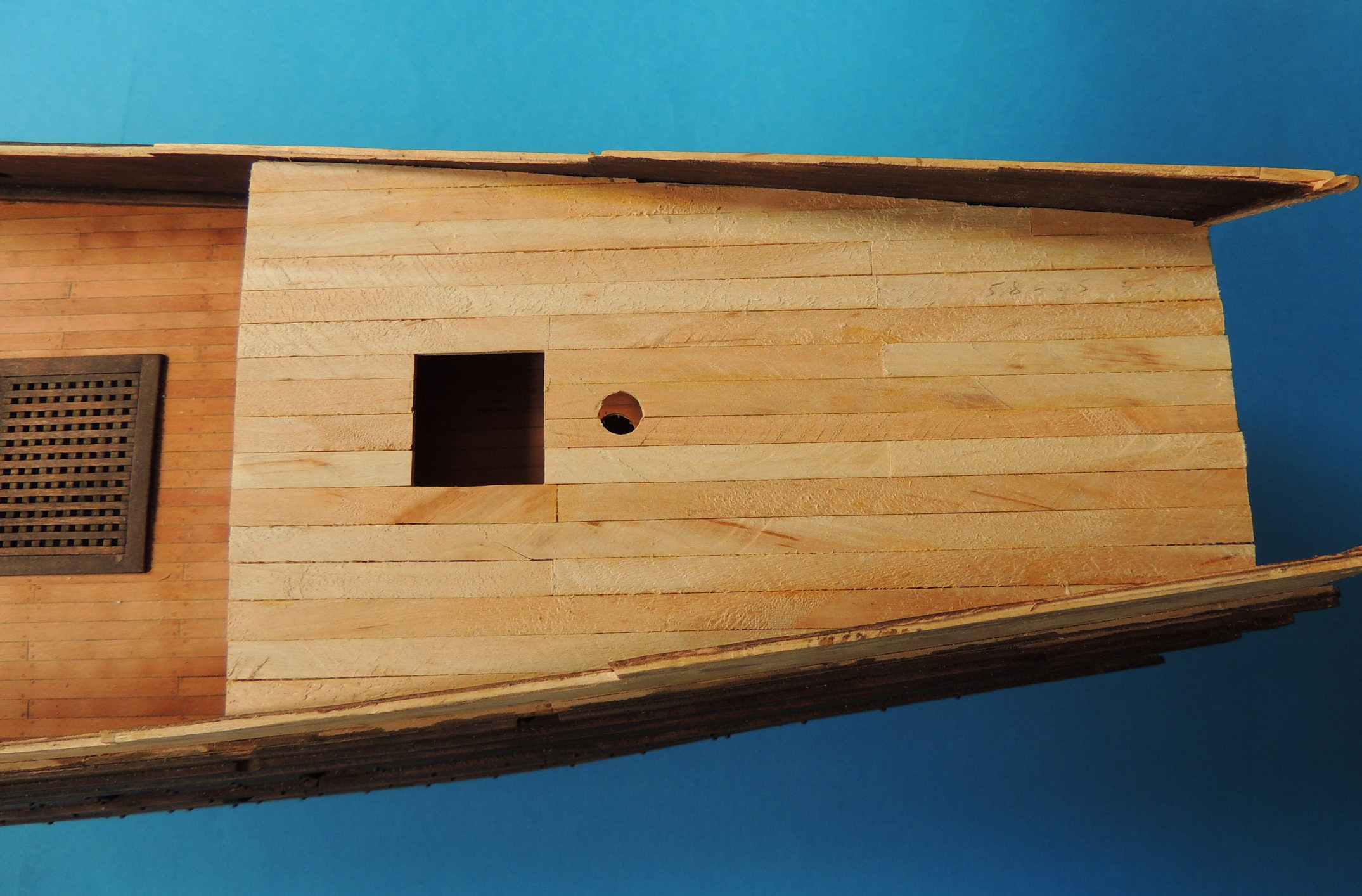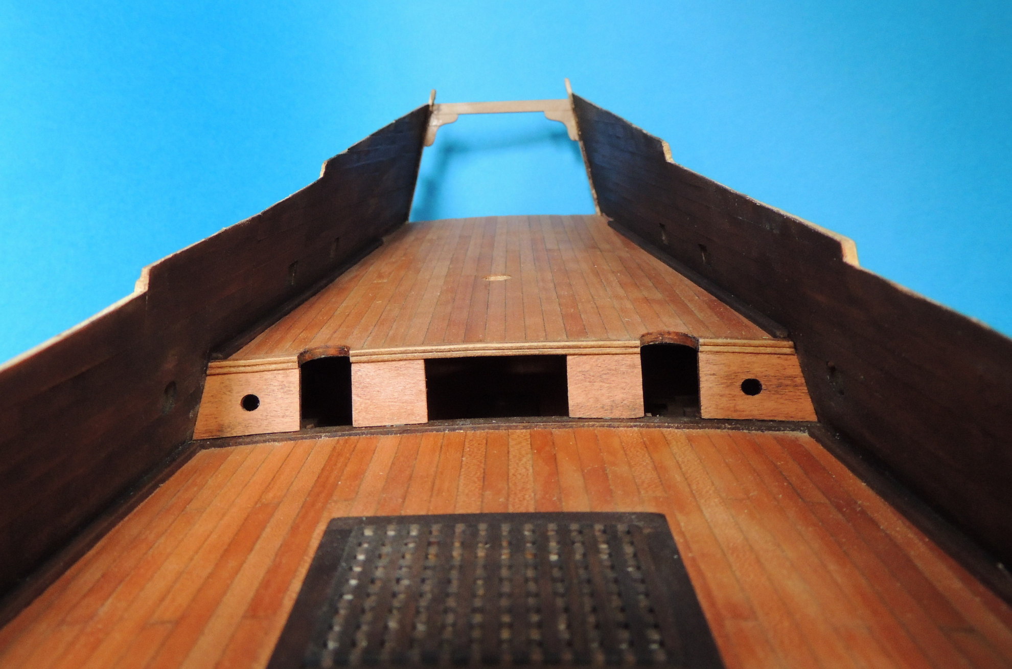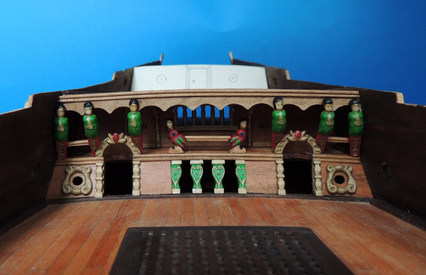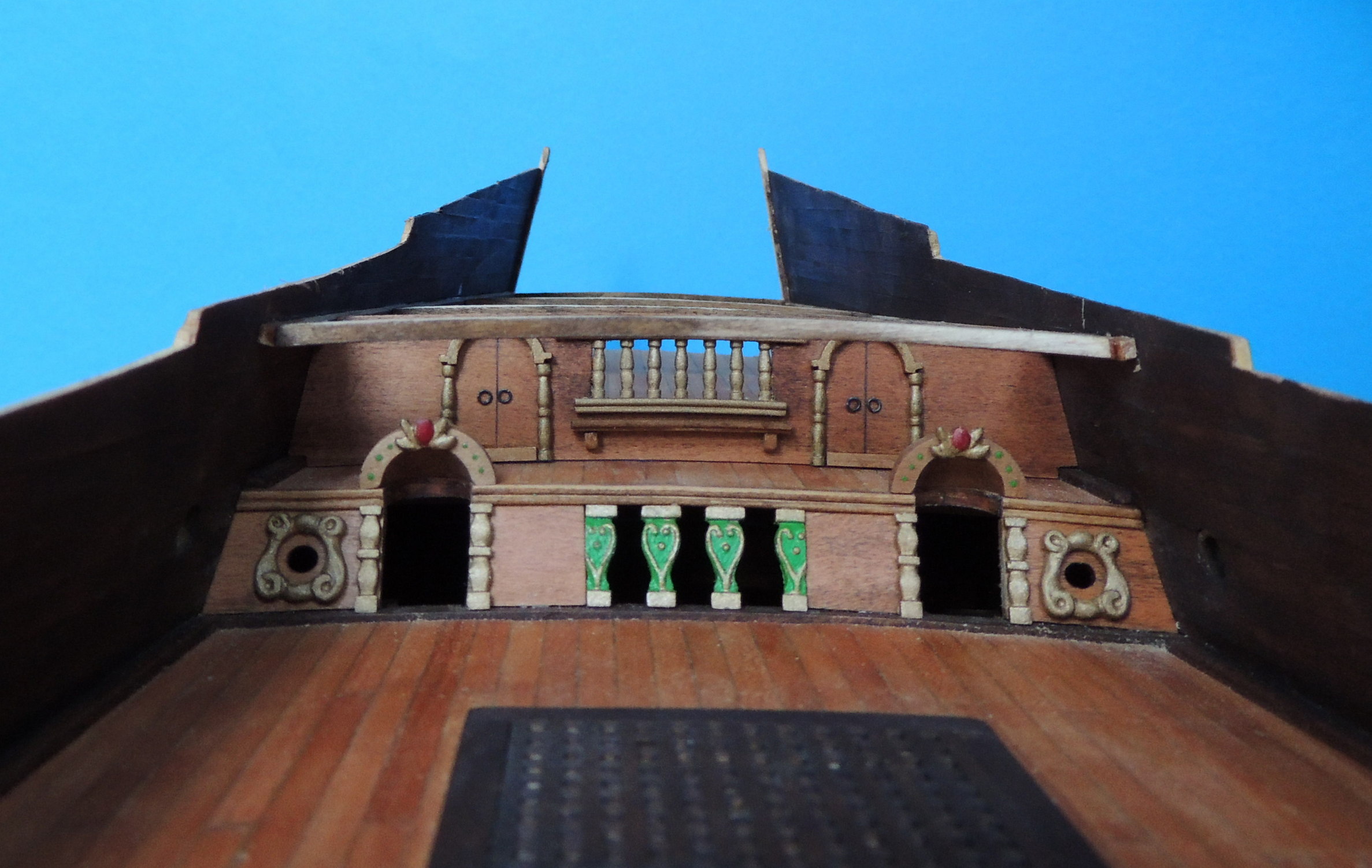 Cześć. Pokład rufowy wykończony. Wyciąłem ostatnie ambrazury. Teraz pracuję nad różnymi ozdobnymi drobiazgami ;)