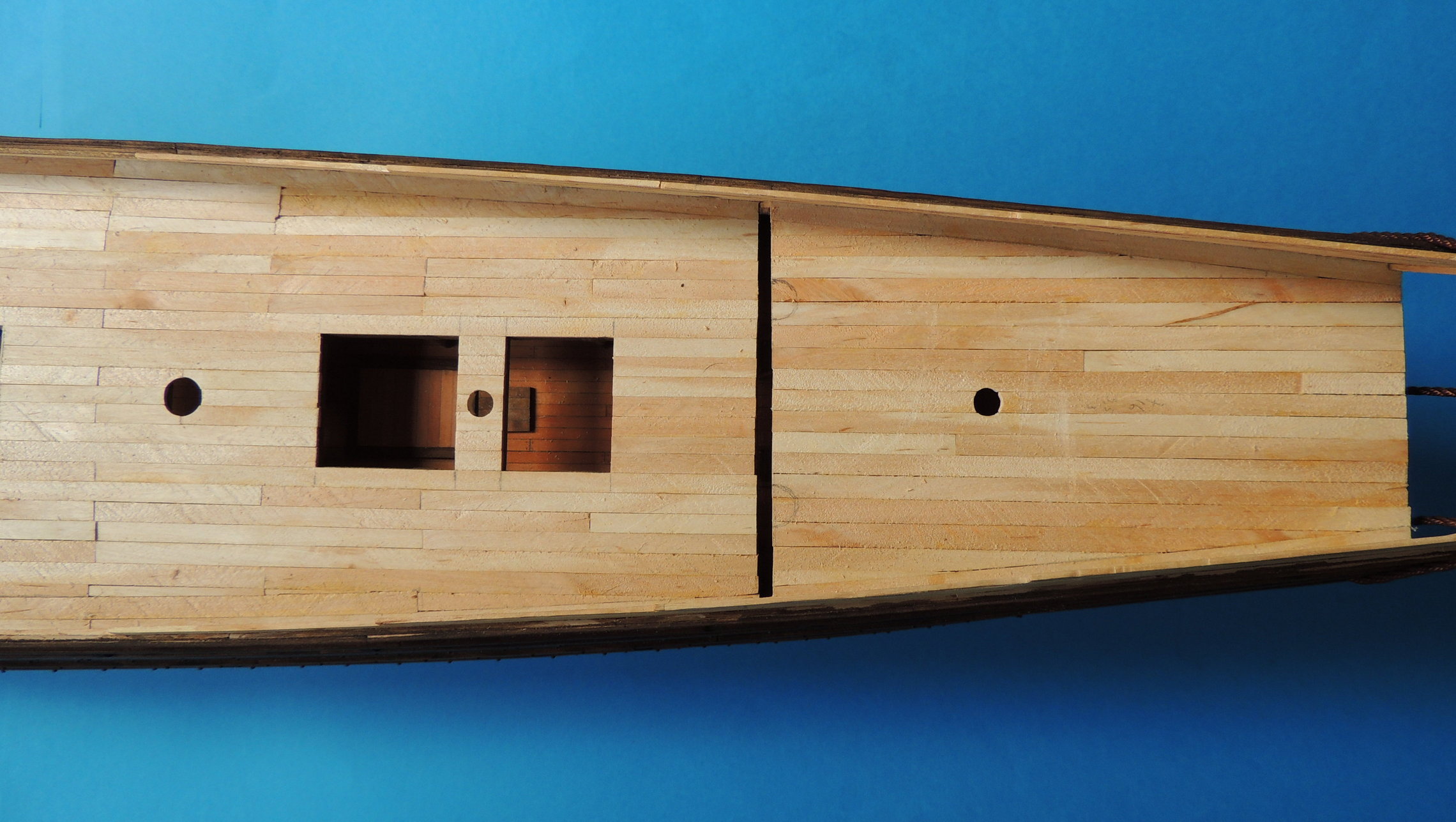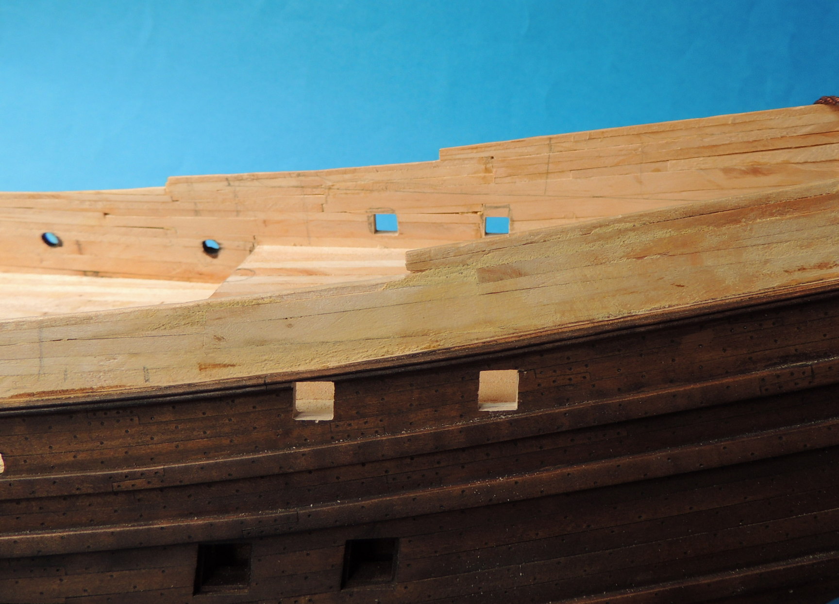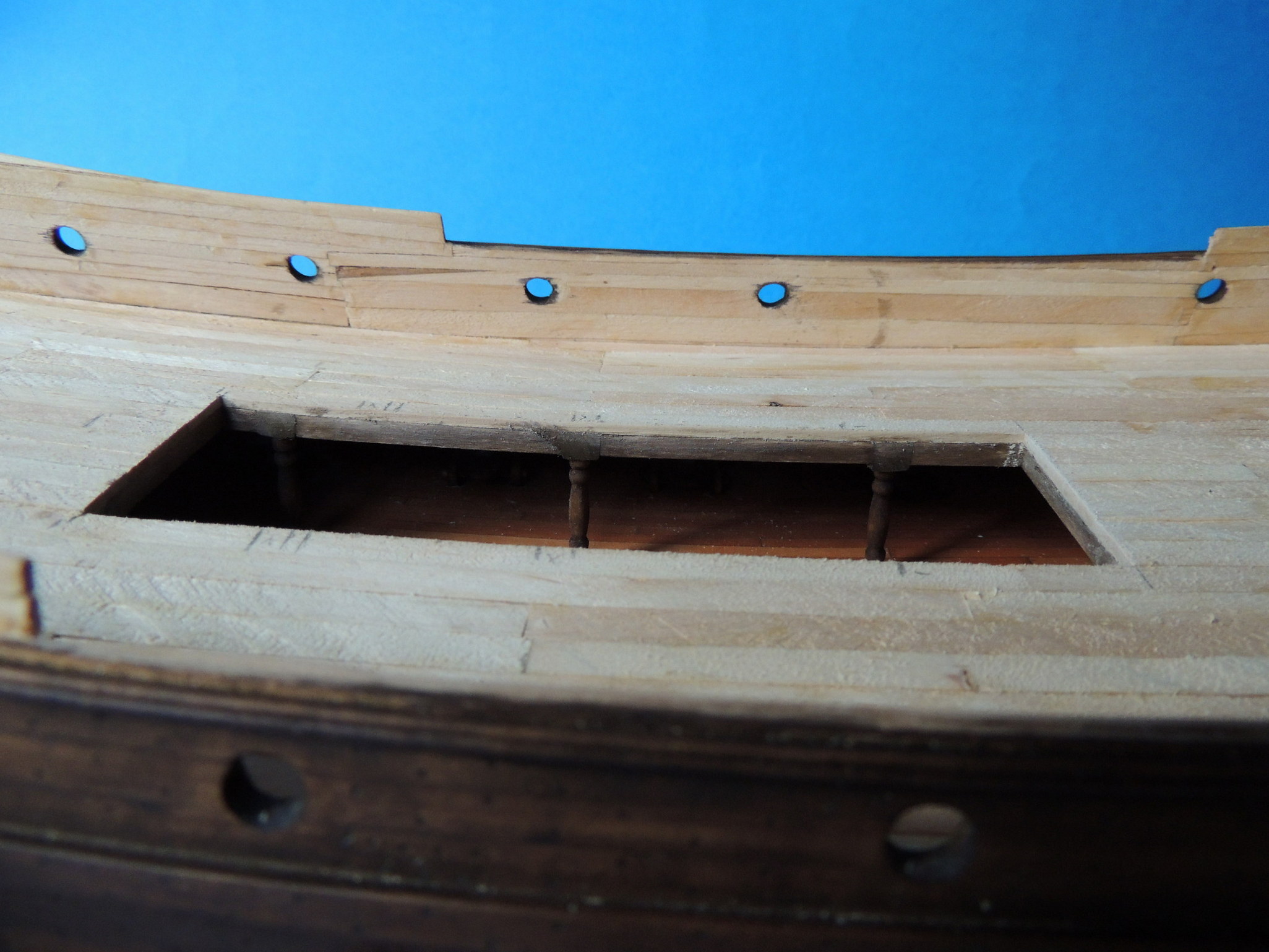 Cześć. Pokład rufowy wykończony. Wyciąłem ostatnie ambrazury. Teraz pracuję nad różnymi ozdobnymi drobiazgami ;)