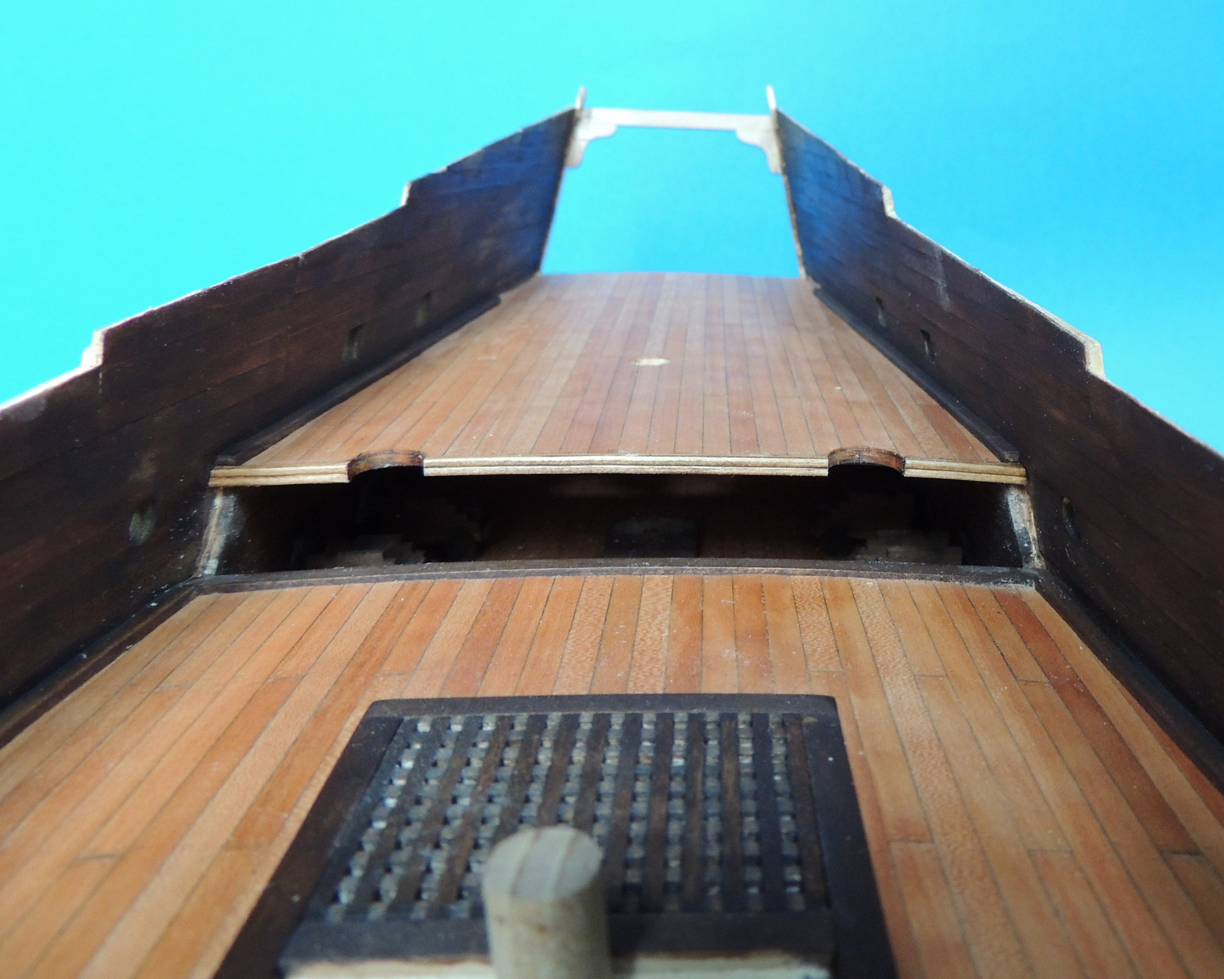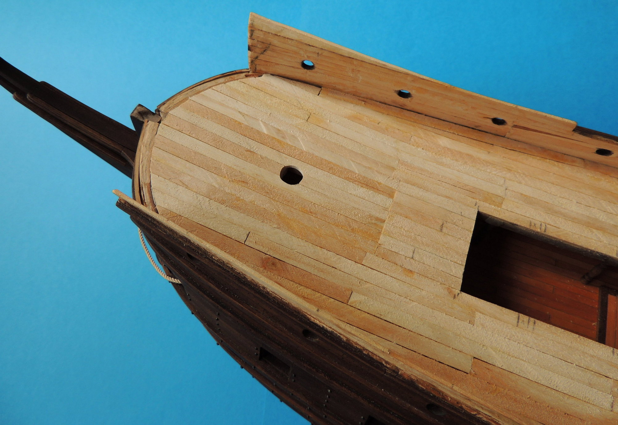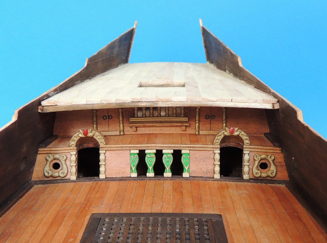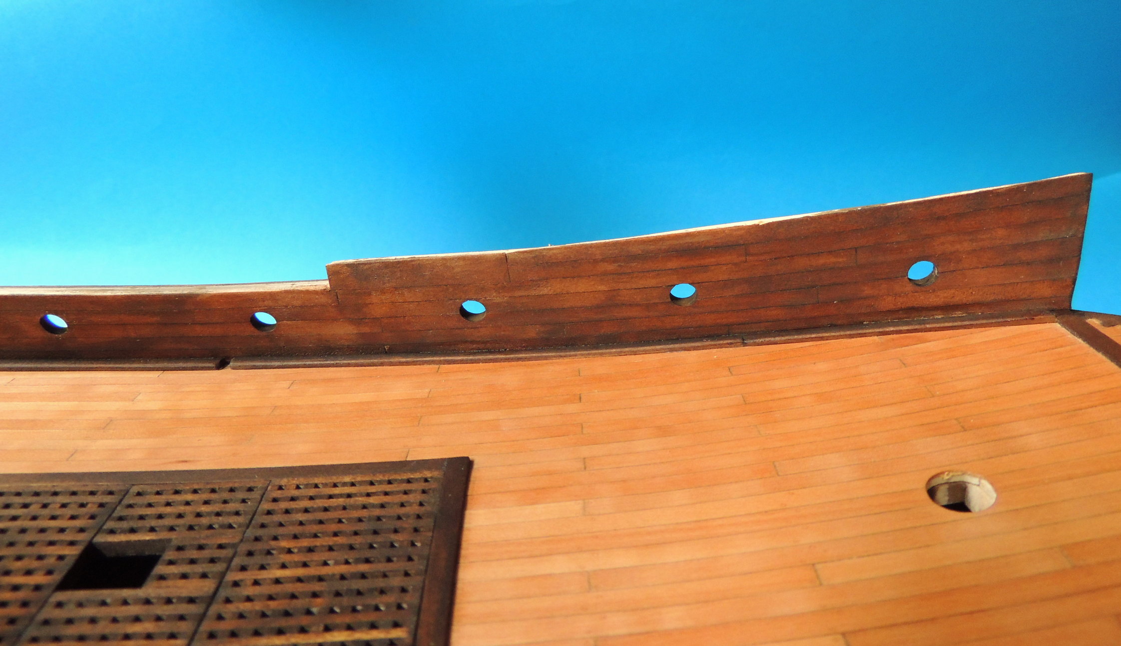 Cześć. Pokład rufowy wykończony. Wyciąłem ostatnie ambrazury. Teraz pracuję nad różnymi ozdobnymi drobiazgami ;)
