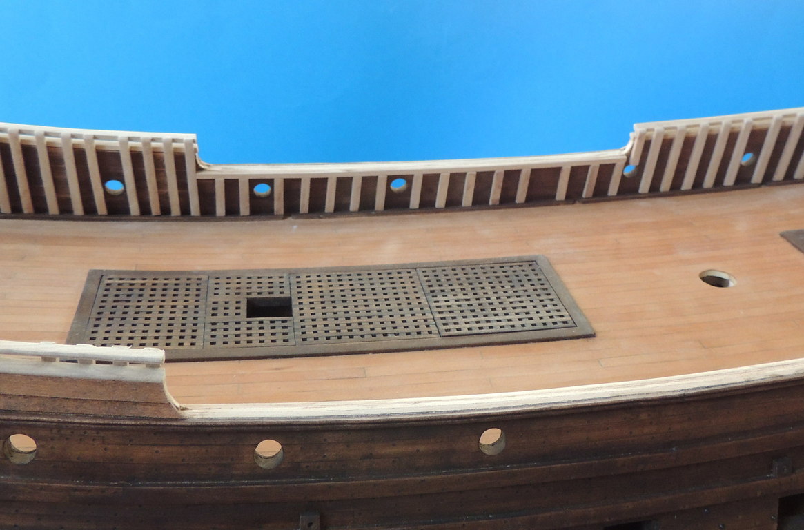 Cześć. Mały postęp w budowie. Musiałem odrobinę poprzerabiać te relingi na rufie. Teraz jest już ok. Model nabrał kolorków