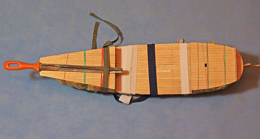 z cienkiej sklejki, tak jak to było w planach zrobiłem górne części burt i dalej oklejać toto listewkami.