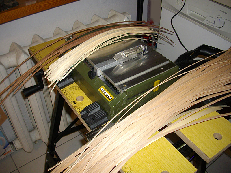 Naciąłem sobie listewek z obłogu bukowego 1,5 mm grubego,