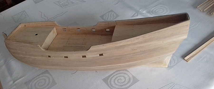 z cienkiej sklejki, tak jak to było w planach zrobiłem górne części burt i dalej oklejać toto listewkami.