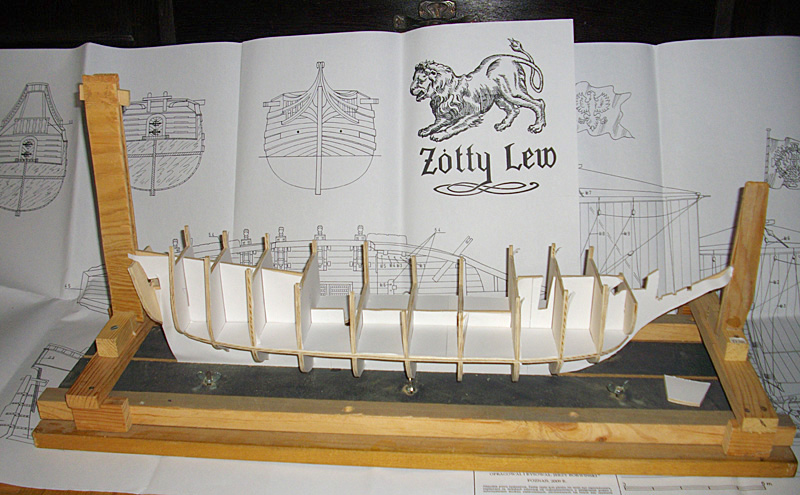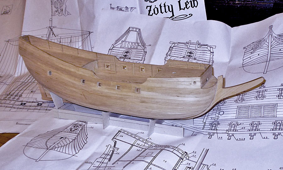 Dawno, dawno, dawno temu firma BOJER wypuściła na rynek model do sklejania pinki z czasów bitwy pod Oliwą – Żółtego Lwa. Dawno, dawno temu w rozmowie z moim kolegą BOrwińskim JERzym podmówiłem się o same plany do budowy tego okrętu. Żółty Lew, zwany też starą pinką został zbudowany w Gdańsku w 1622 roku. Brał udział m. in. w bitwie pod Oliwą i w paru innych potyczkach ze Szwedami. W lipcu 1628 roku koło twierdzy Wisłoujście został trafiony szwedzką kulą zapalającą w magazyn prochu i eksplodował. W zeszłym roku podjęto próby odszukania wraku Żółtego Lwa… znaleziono, ale inny wrak. Istnieją dwie rekonstrukcje tej pinki. Jedna, Shipyardu (model kartonowy do sklejania) przedstawia okręt bez przedniego kasztelu, druga rekonstrukcja Jurka Borwińskiego (model drewniany do sklejania) przedstawia okręt z niskim przednim kasztelem. Plany dostałem i zacząłem zabawę.