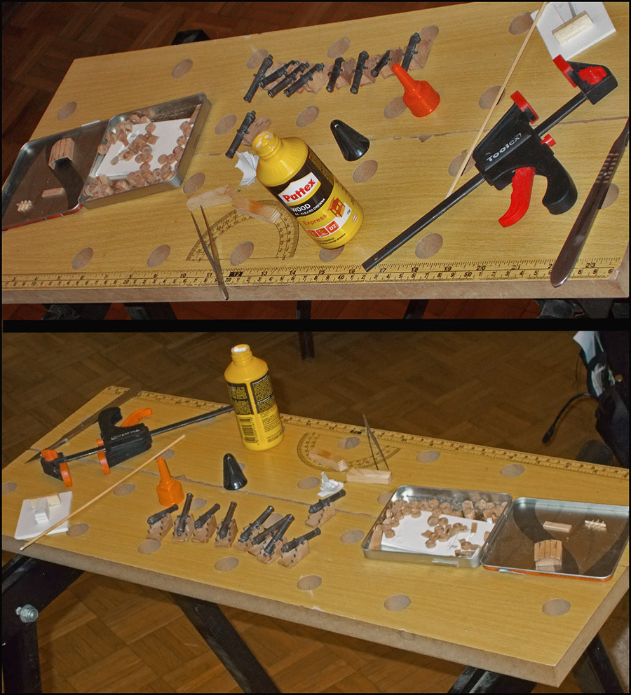 Święta się skończyły, sanepid już nie powinien nalotów robić, więc można było wrócić do bałaganienia . Dzisiaj pogłaskałem troszkę odlane lufy dział i poczerniłem troszeczkę.