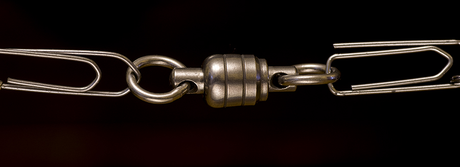 Początkowo jako krętlik stosowałem łańcuszek z ruchomymi kulkami… efekt słaby, musiałem często inicjować skręcanie przez popychanie „samolocika” czy inne kombinacje.