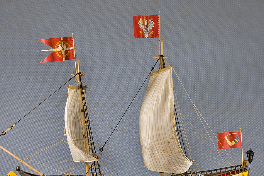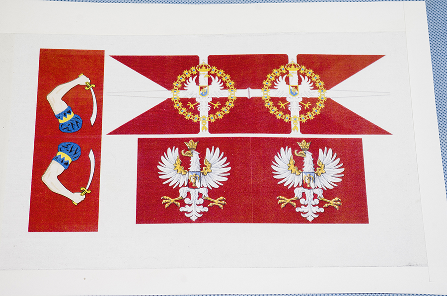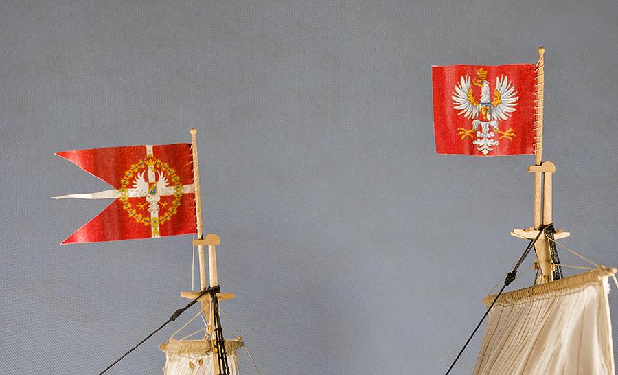 Kotwice gotowe do podwieszenia, czas na wywieszenie bandery. Jako, że bandery na Żółtym Lwie mają dość skomplikowany wzór i pędzelkowanie byłoby okrutnie trudne, wymyśliłem, że se flagi wydrukuje.