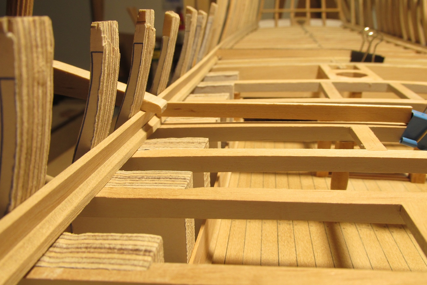 Małymi krokami do przodu. Wkleiłem wreszcie pokładniki i mogłem zabrać się za waterway-e. No i potem furty dział. To będzie dla mnie spore wyzwanie, bo nie do końca rozumiem ich położenie.