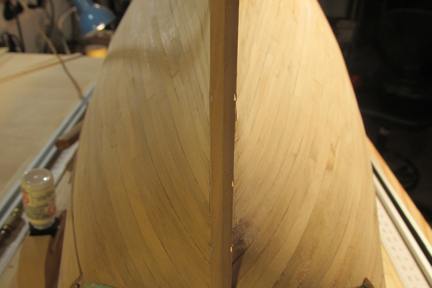 Dzięki Tomek za wskazówki, będę musiał kombinować z tymi niedociągnięciami, ponieważ denna część kadłuba będzie malowana olejem Sadolin a na nim widać wszystkie najdrobniejsze rysy w drewnie.
