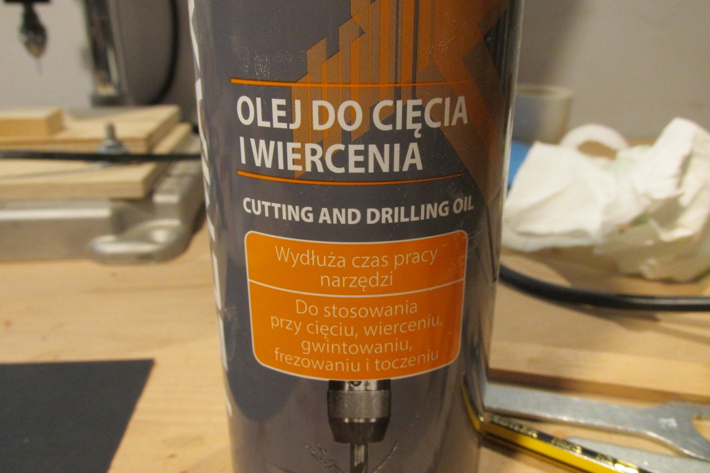 Dzięki koledzy za wskazówki. Poniżej zdjęcie chłodziwa jakie mam, faktycznie po posmarowaniu lepiej się tnie. Zakończyłem na razie prace nad płetwą sterową, elementy idą do woreczka i czekają na swoją kolej. Koniec przyjemnego, wracam do poszywania