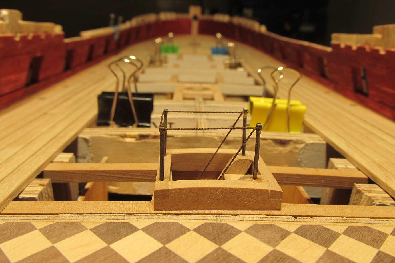 Postanowiłem, że zrobię jednak zejściówkę na lowerdeck, która zlokalizowana jest pod górnym pokładem forecastle. Niedługo zacznie się sklejanie desek pokładu, na razie wszystko na dopasowuję na sucho.
