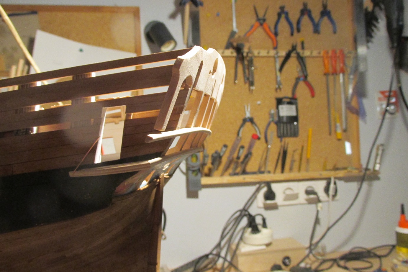 Zabrałem się za galeryjkę rufową, łatwo nie jest
