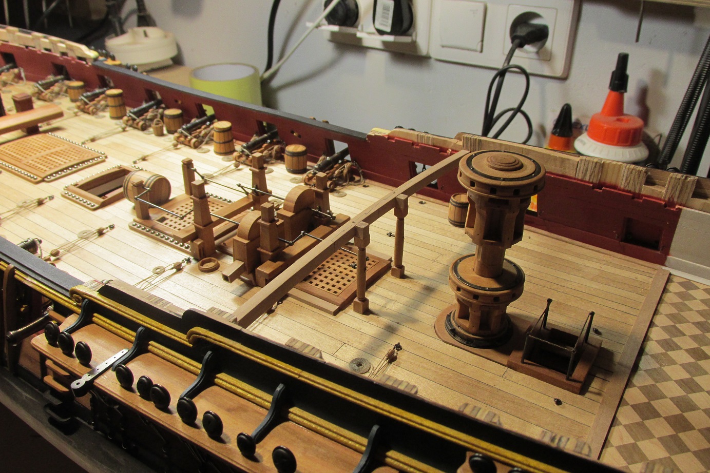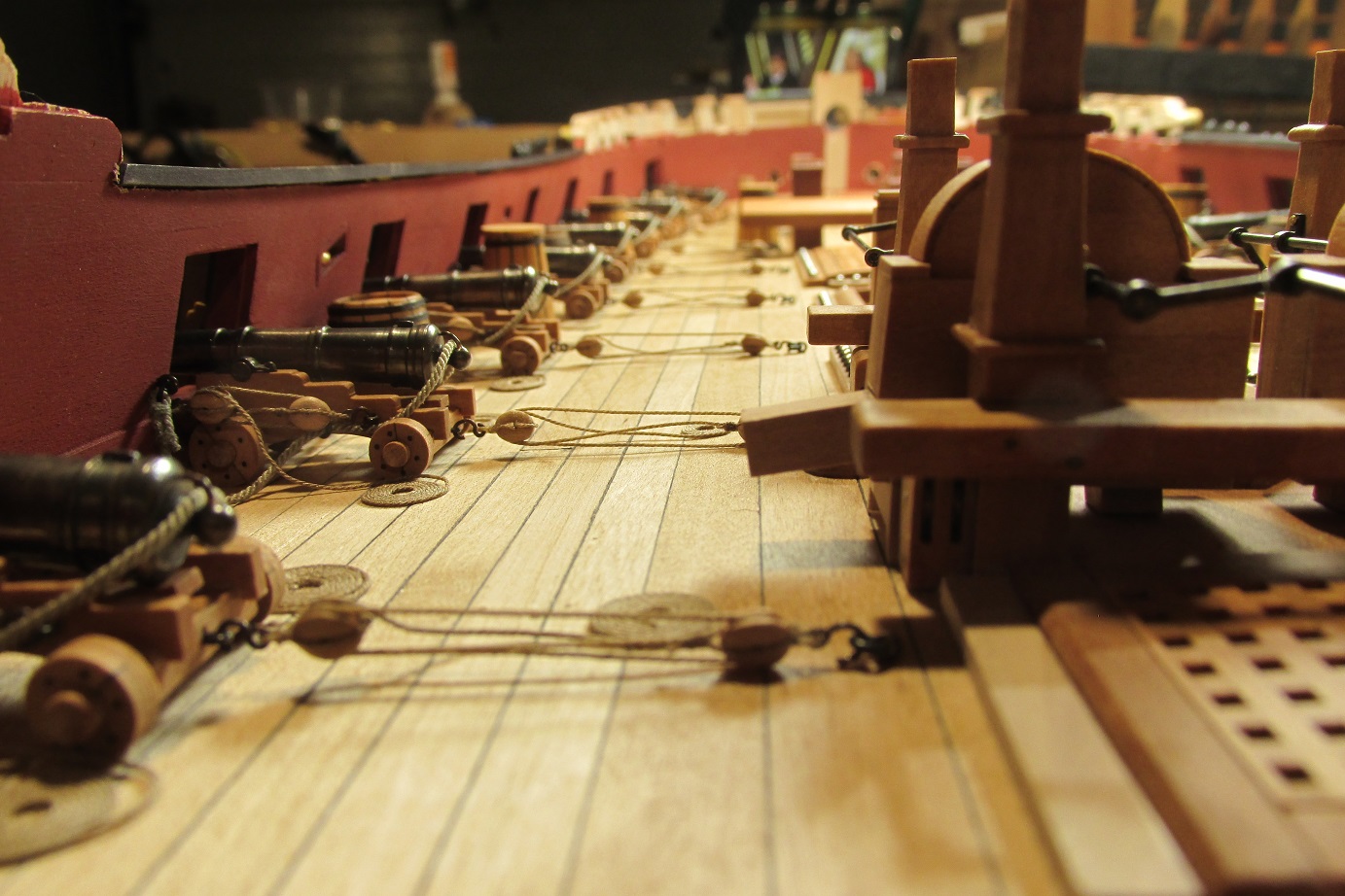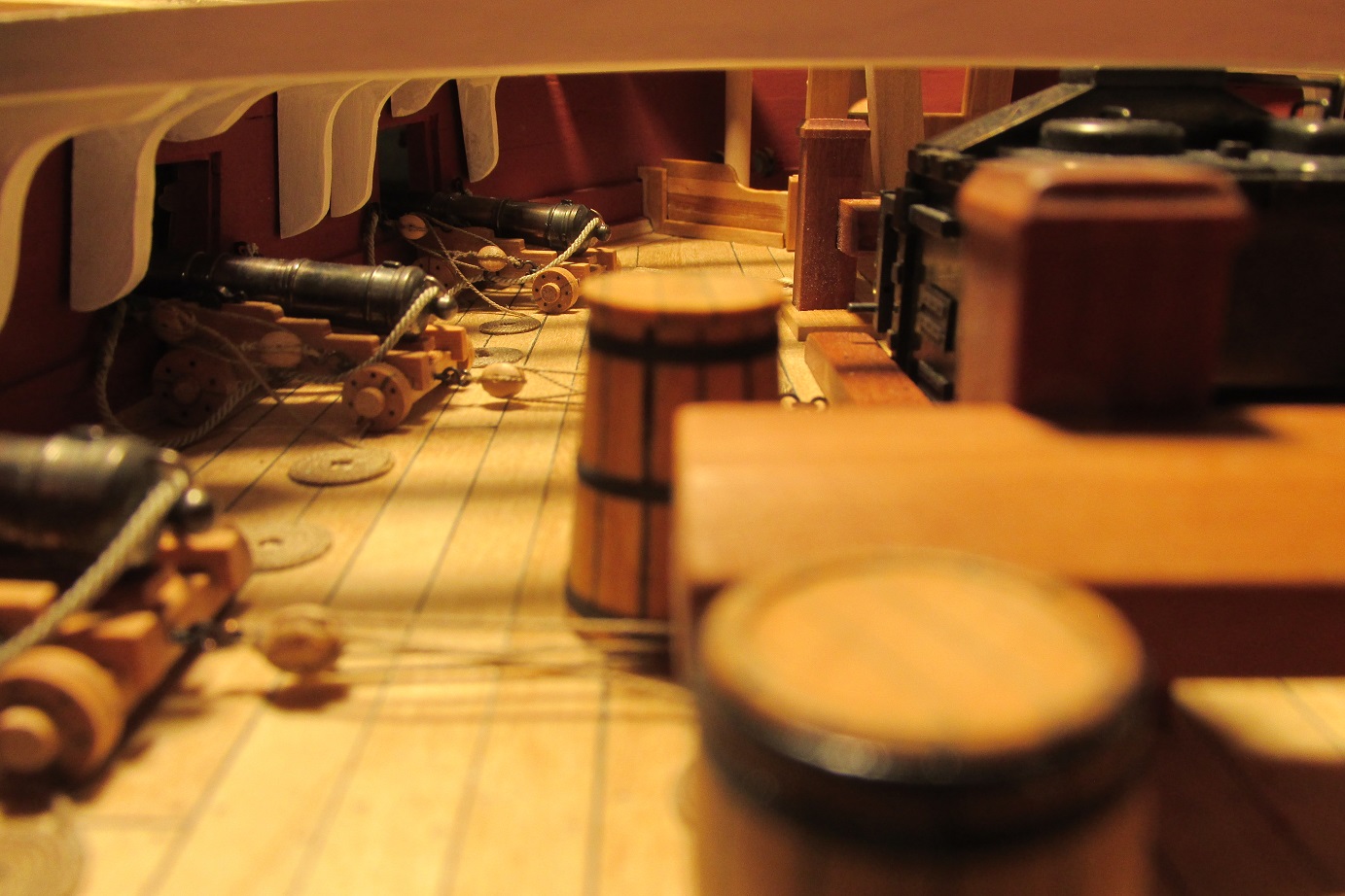 PS: Super fajny model Ci wychodzi! :o Tylko usun te beczki miedzy dzialami - to nie jest dlan odpowiednie miejsce (beczki z woda byly typowo skladowane w miejscu zwanym HOLD pod dolnym pokladem (tzw. orlop deck).