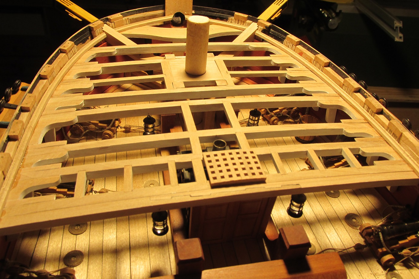 Montowanie pokładników zbliża się wielkimi krokami. Postanowiłem zrobić lampy, które będą wisiały pod nimi. Zacząłem też montować działa do pokładu działowego.