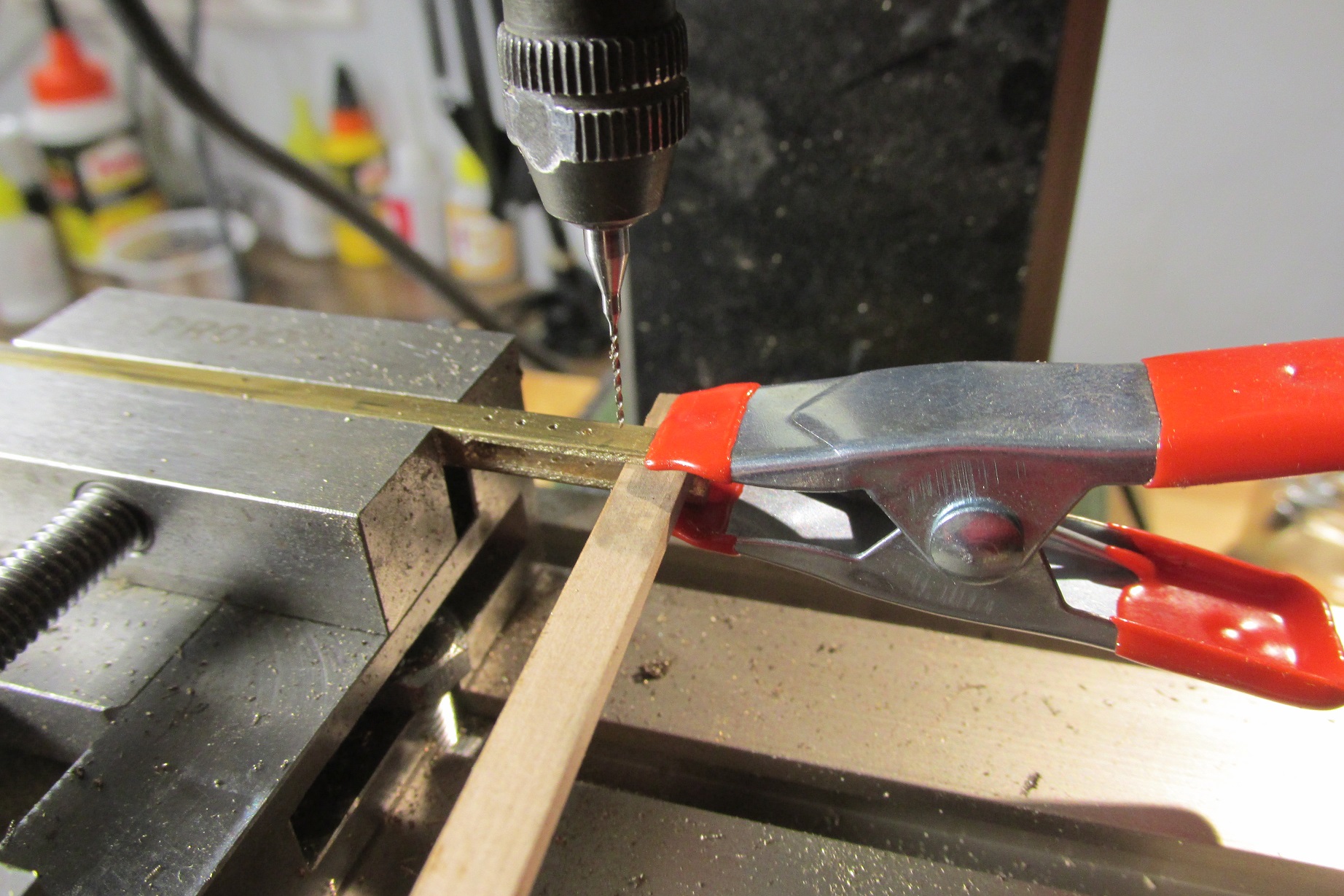 Cały czas jestem przy masztach i wykonuję elementy, których nie wykonałem wcześniej jak na przykład podporę pod drzewce masztów wytykowych złożonych wzdłuż burty. Dziś malowałem reje i bocianie gniazdo kolumny bezana.